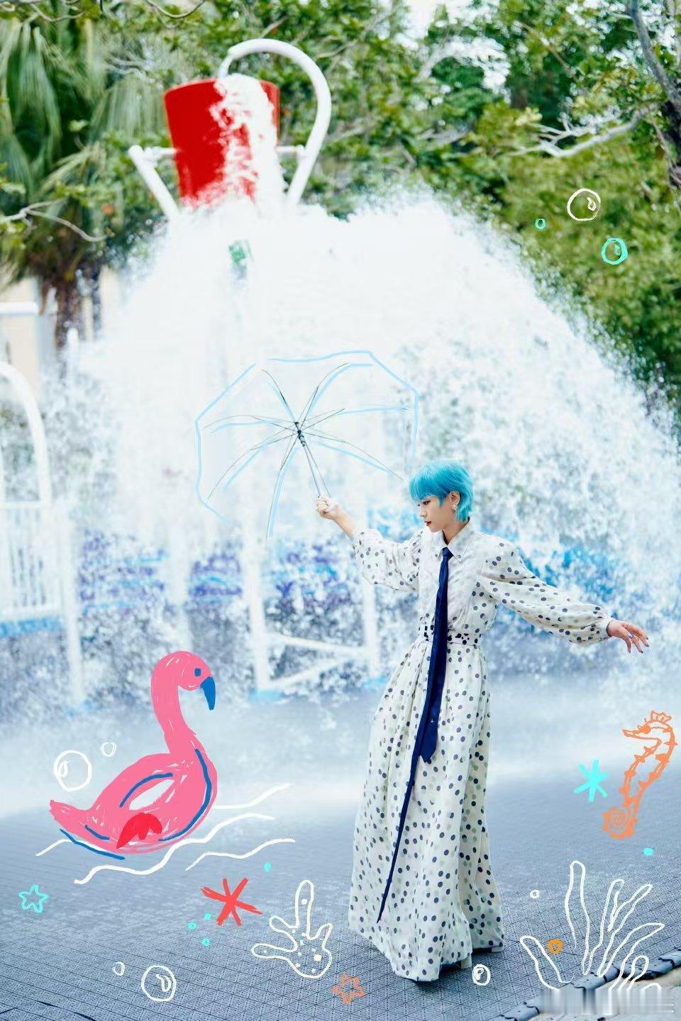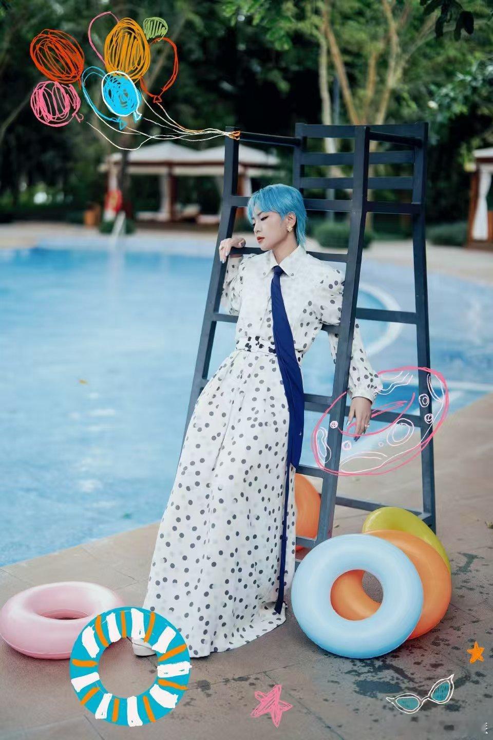 周笔畅ELLE造型周笔畅elle红毯周笔畅ELLE泳池风太赞!白波点裙配深蓝长领带,蓝发很吸睛。泳池边、水设施前,甜酷感直接拉满,每一张都像夏日时尚大片,绝了~ELLE红毯