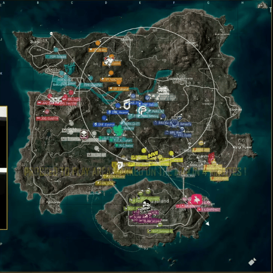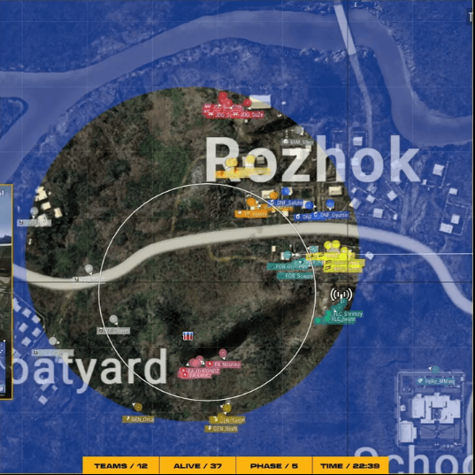 阶段6,圈型刷在地图R成南部山坡附近。JDG选择开车转移圈边附近,但被多队枪线集火淘汰。TE利用手雷集火淘汰QAD全队,4AM独狼也被VP清理。NAVI三人清理掉FOR独狼,随后再将VP两人淘汰出局