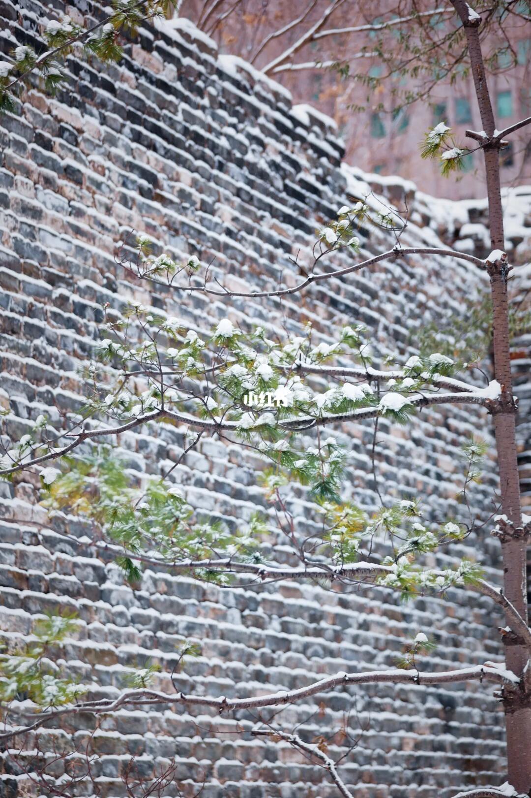 破损的明城墙与周围枯落的树木为这座遗址增添了更多的故事,全长1.5公里,已经有600多年的历史,可上城墙,喝一杯咖啡,看看绿皮车和中国尊的同框,也很惬意。