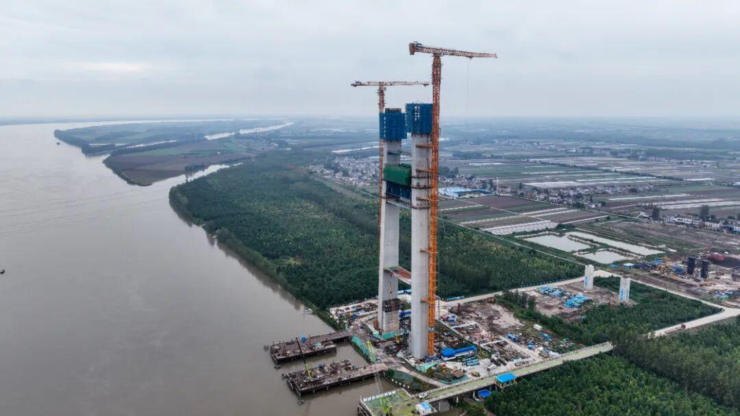 10月17日,荆州李埠长江公铁大桥北岸主塔中横梁顺利完成浇筑,高度突破160米,全体建设者奋力冲刺,力争明年春节前实现北主塔封顶目标……