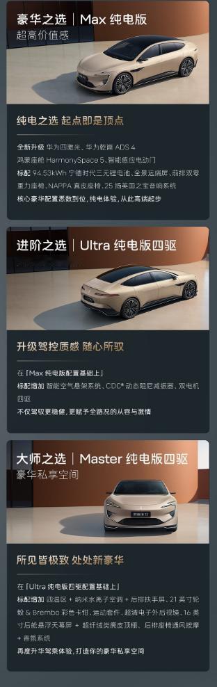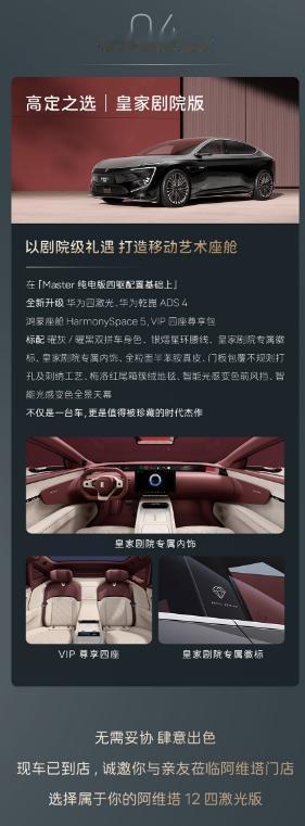 阿维塔12四激光雷达版今天上市,有增程有纯电,还有皇家剧院版可选,售价25.99