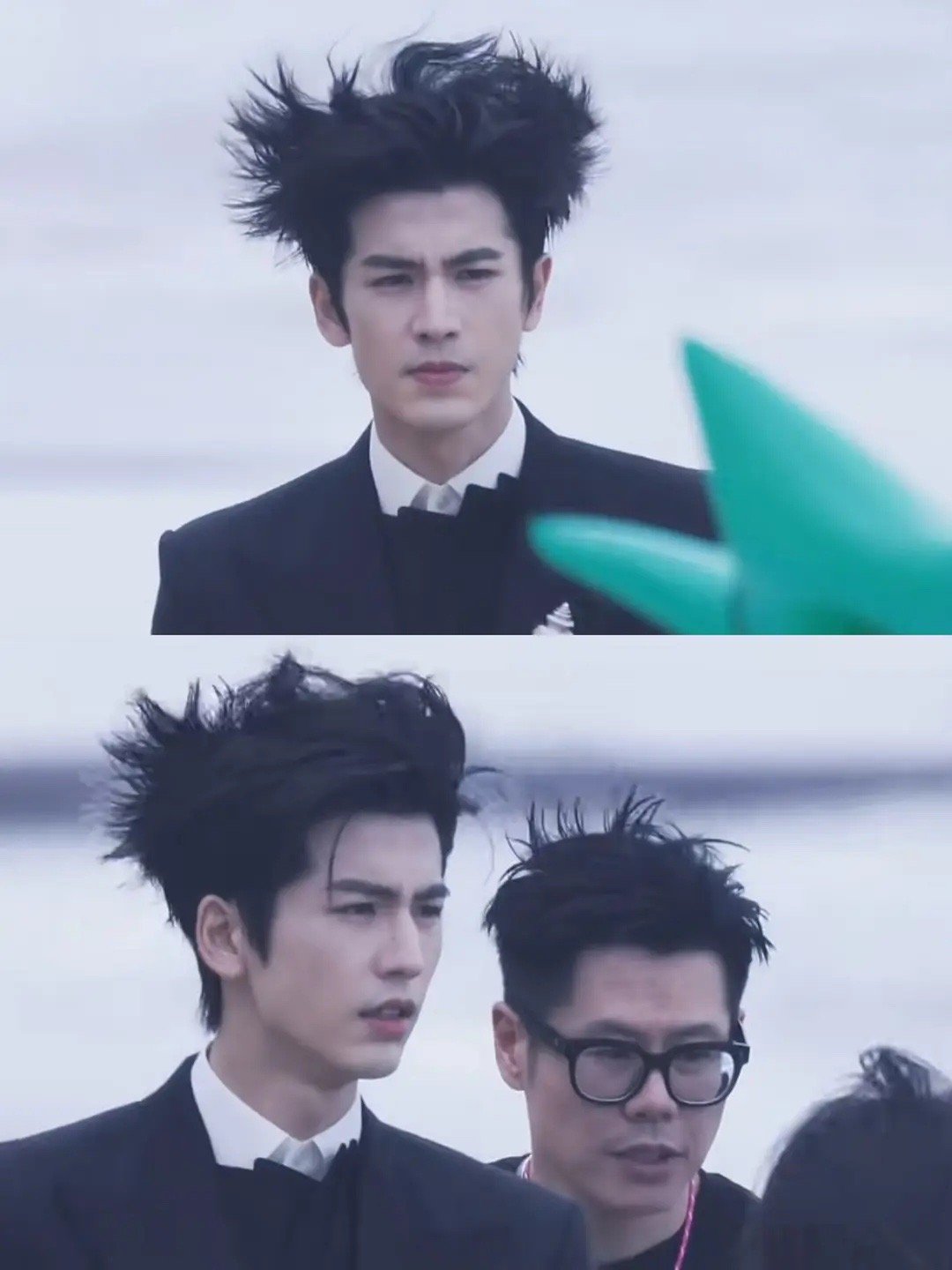 张凌赫头发被吹成海胆了没点发量吹不成这样的!张凌赫好健康的发际线
