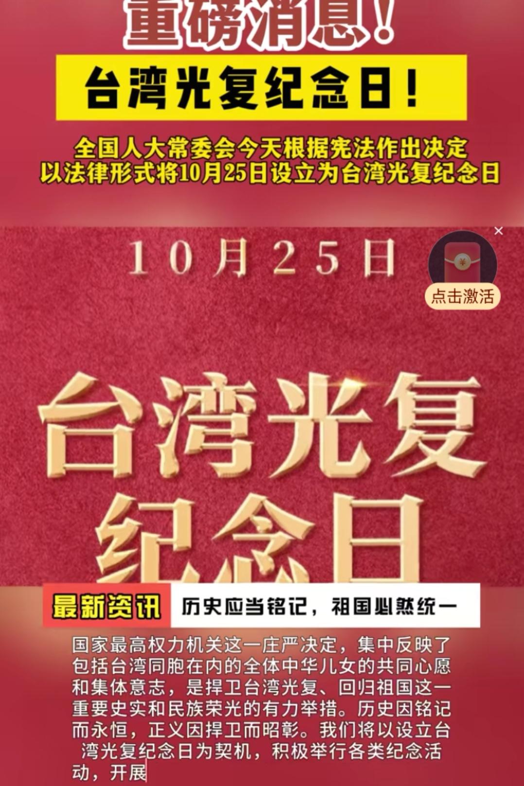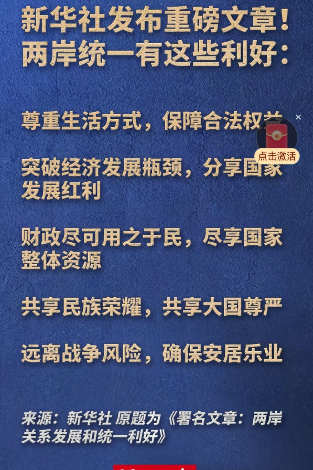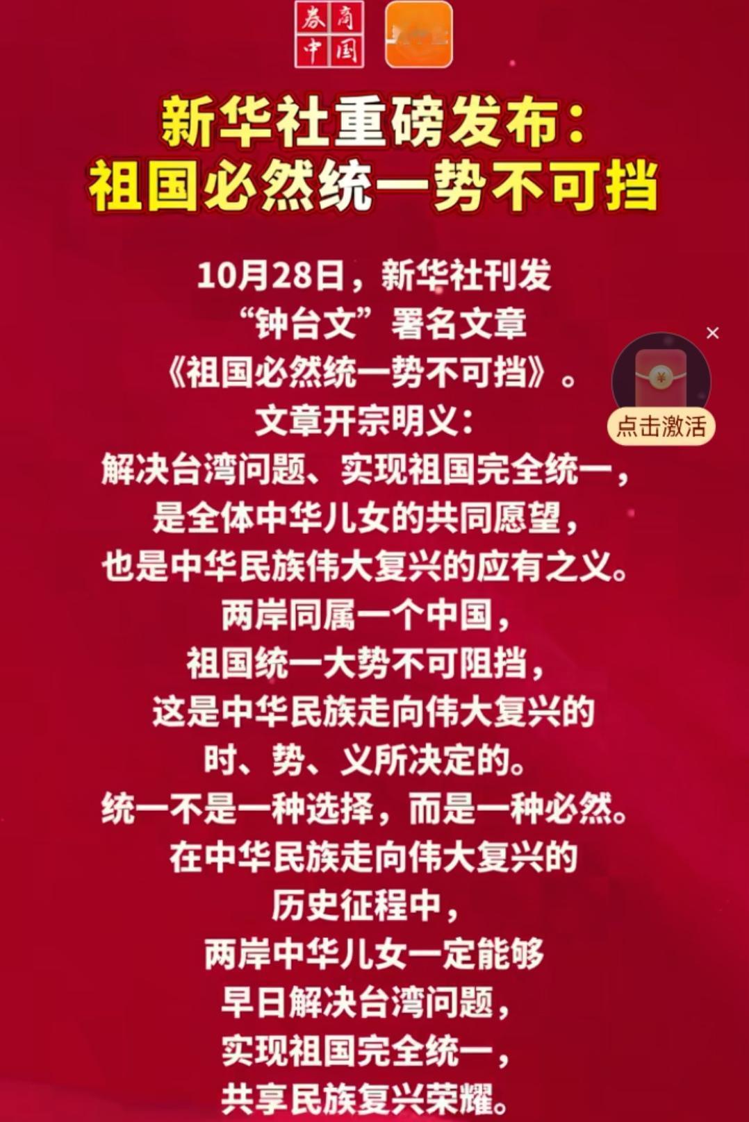快了,一切都在有条不紊的进行中! 统一,其实一直都在进行中! 为了祖国的统一,为了民族的解放事业,中国共产党领导的中华人民共和国做促了全方位的准备工作。 告诉全世界台湾早就是中国的一个省!一定要解放台湾也是革命前辈的遗愿! 演习、围岛、中线、海权、空权… 三个80周年纪念日,联合国成立八十周年纪念日,中国人民抗日战争暨世界反法西斯战争胜利80周年纪念日,到台湾光复纪念日! 开展执法行动,悬赏征集线索,18名台湾军方核心违法骨干名单及资料曝光。立法侦查台独顽固分子沈伯洋。 新华社“钟台文”署名发文《祖国必须统一,势不可挡》!希望世界支持中国的统一事业。 紧接着更进一步,更具体,直接给实惠,新华社发文,两岸统一的五个利好,给台湾同胞吃定心丸。 演练执行中,无人机打前阵,机器狼送弹药,抢滩登陆训练。