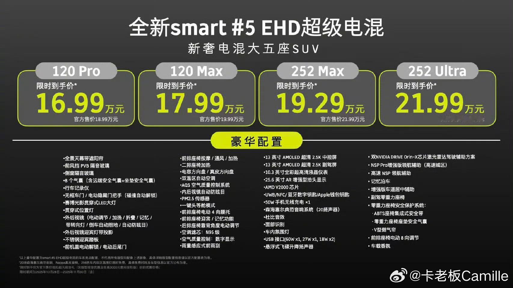 我仔细看了smart精灵5号超级电混,确实有点东西:双电机、雷神电混、1615km续航、奔驰级调校,16.99万起这个配置很卷。