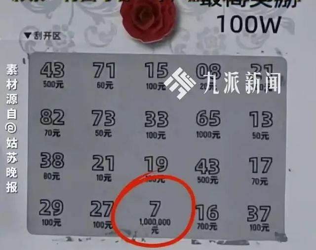 据姑苏晚报10月27日消息,近日,一苏州市民拿着一张俗称“大7”的体彩即开票,来到苏州市体育彩票管理中心兑奖,票面显示中奖100万元,却被告知彩票是假的。