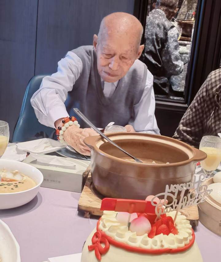 生日当天,五个子女共12位家人,在杭州东站附近的“新国立酒店”为陈老庆生。“酒店是大哥的孙子安排的,蛋糕是大姐的女儿订的。”高明琴说,这次只是小聚,一桌人温馨热闹。两年前在公公99岁生日时,他们曾办过盛大的寿宴,仅小辈们就坐了四五桌。