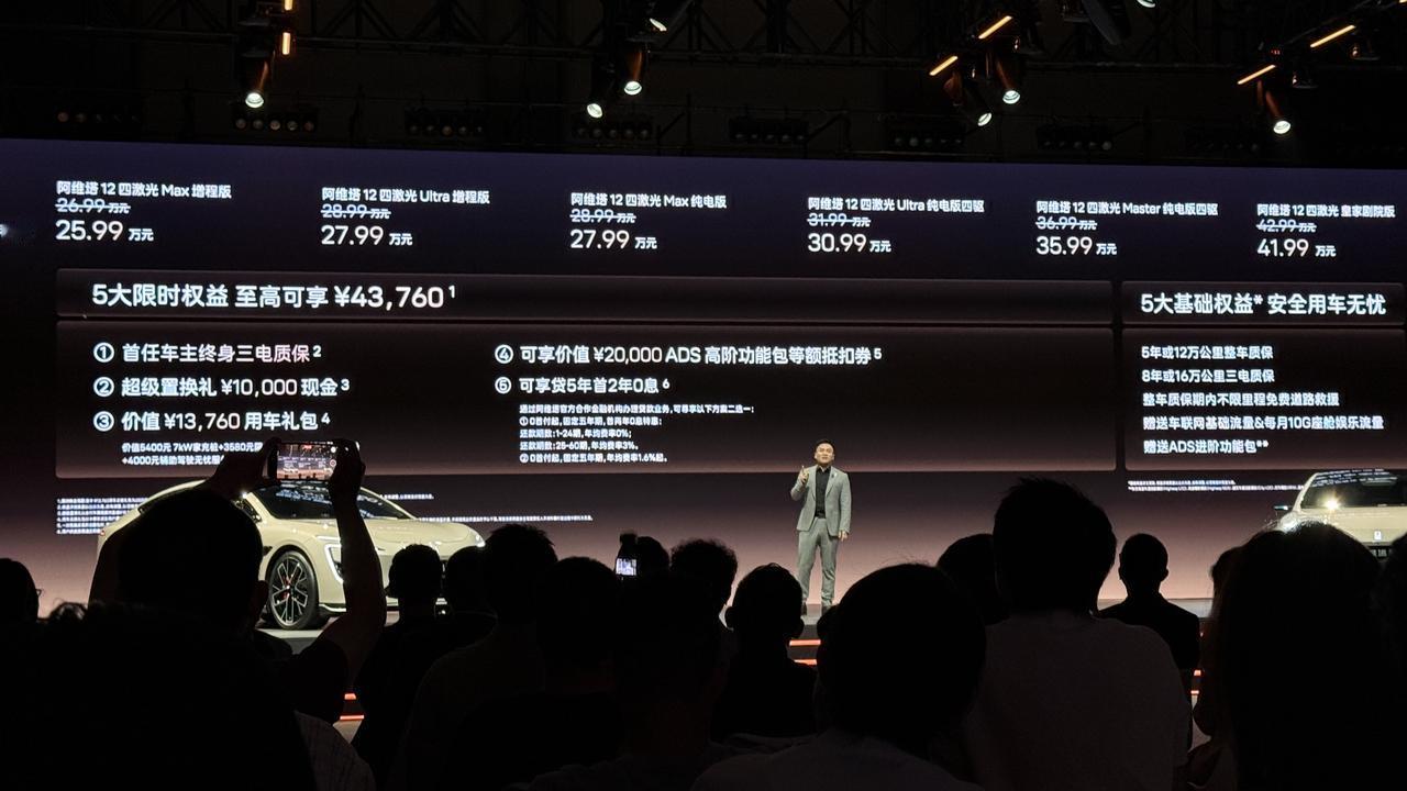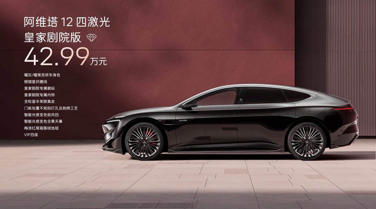 阿维塔12四激光版焕新上市,有纯电和增程双动力,共6个车型版本,25.99万元起售,至高能享43,760元限时权益。更重要的是新车全系标配华为四激光雷达系统、华为乾崑ADS 4、鸿蒙座舱HarmonySpace 5,凭借十项全新升级,十二项同级独享,大大提升了在细分市场的竞争力。 那就详细聊一下升级亮点。辅助驾驶能力这部分相当可以,配置上,3颗高感知长距激光雷达与1颗后向高精度固态激光雷达,360°无死角全域感知覆盖,安全性更高。配合基于WEWA技术架构的华为乾崑ADS 4,车辆实现了从“模仿人类驾驶”到“超越人类驾驶”的决策进化。加上鸿蒙座舱HarmonySpace 5,交互更丝滑,移动影音娱乐体验更高级。 纯电版,电池容量为94kWh,后驱版车型CLTC续航达755km;四驱版的零百加速是3.8秒,性能媲美超跑。增程版,全系标配52kWh宁德时代骁遥超级增·混电池,356km的CLTC纯电续航,城市通勤一周一充。1,270km的综合续航里程,远行无忧。支持5C峰值充电倍率,仅需10分钟即可将电量从30%充至80%。阿维塔12四激光版,带来了“增程体验更纯电,续航表现更燃油”的全新体验。 其他方面,提供VIP四座尊享包、纳米水离子健康氧颜舱等配置,做到了细节豪华。同时,后排座椅支持加热、通风、8点位按摩与电动调节,配合车载智能冷暖箱与50W无线快充,方方面面,细致周到,重新定义30万级豪华轿车标准。阿维塔12四激光版,就是如此从容出众。
