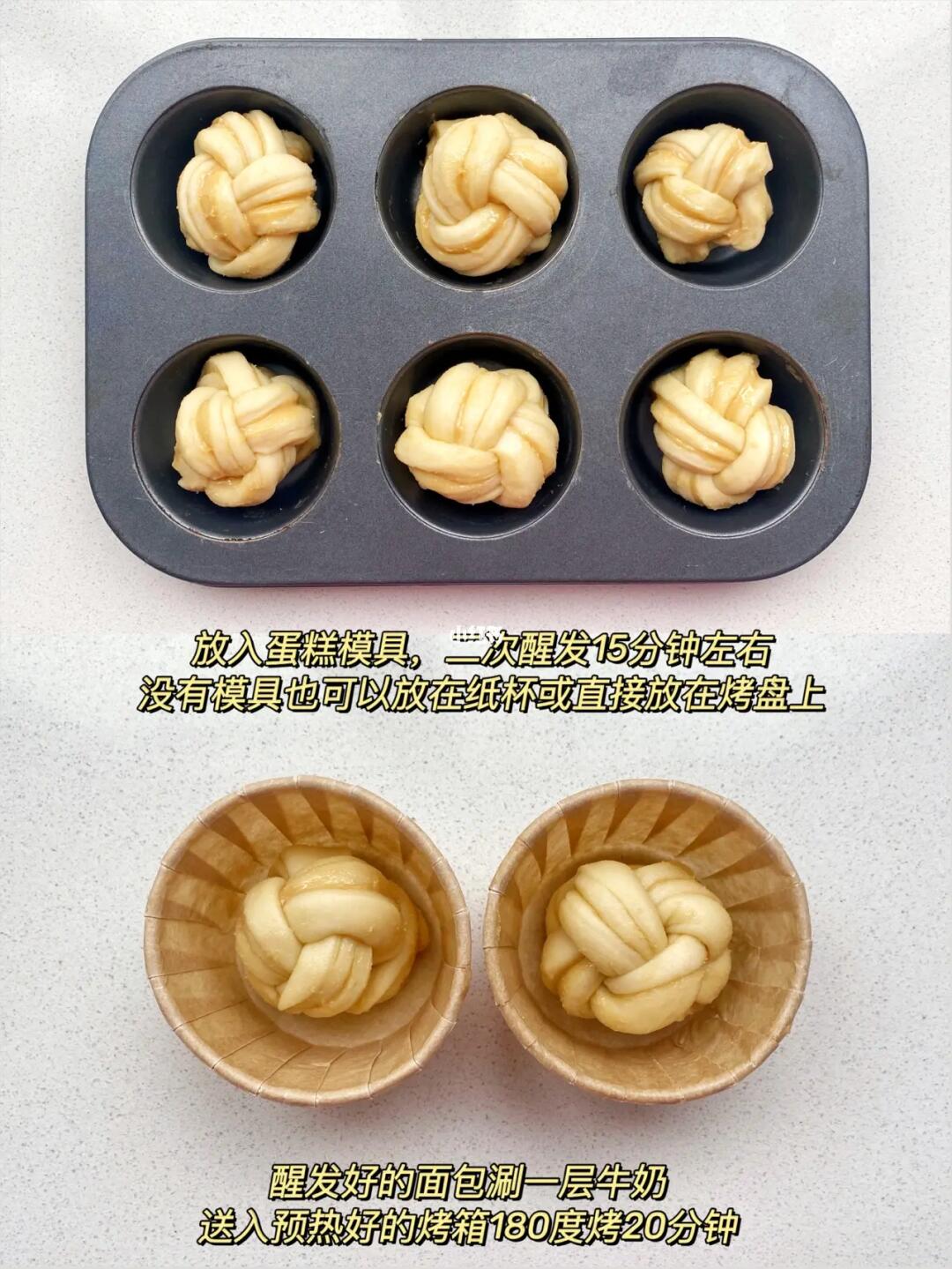 5⃣️发酵好的面包刷上一层牛奶,放到预热好的烤箱里,180度20分钟。
