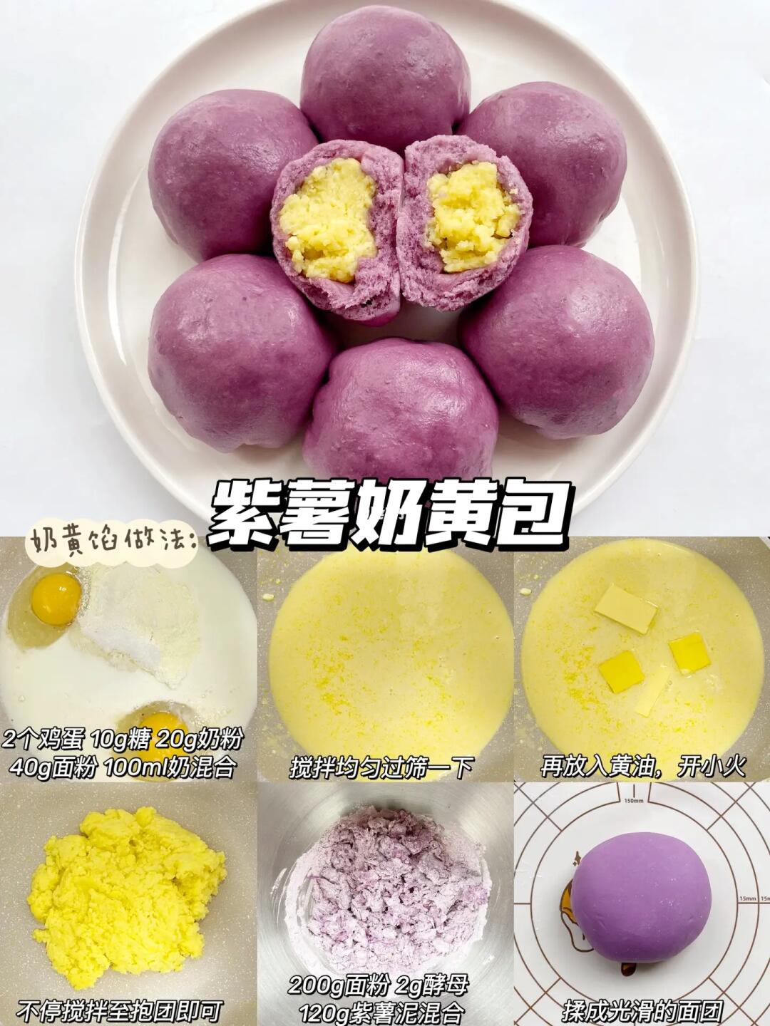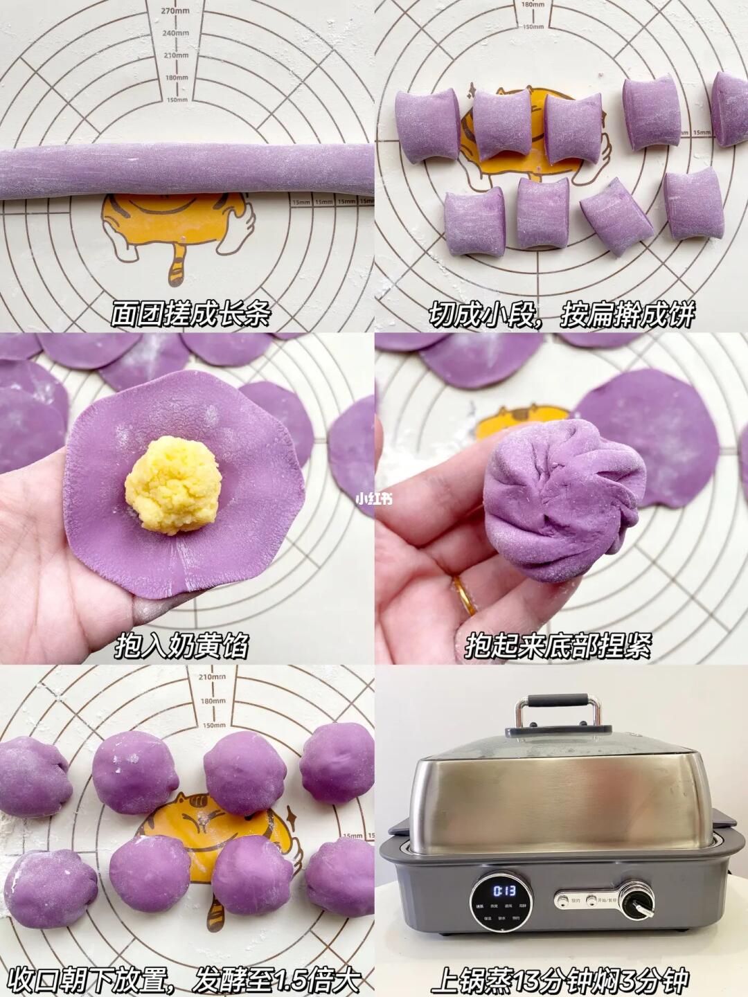 🌟南瓜红枣馒头和紫薯奶黄包都是用一次发酵的做法,一次发酵更加简单省时,整理好的生胚放入电蒸锅发酵至体积约1.5倍大左右,就可以开始蒸了,用电蒸锅来做设定好时间就不用管啦,时间一到自动提醒,敲方便。😋这个奶黄馅也是好吃不腻,已经做过好多次了,大家按照图片上的比例照搬着来就可以啦。