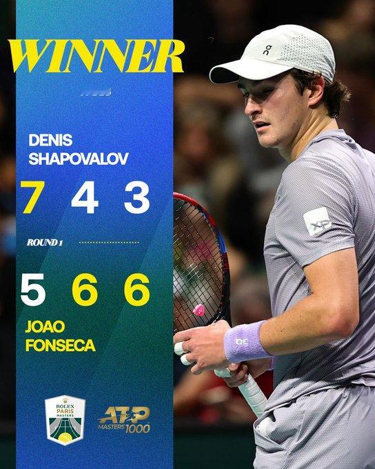 巴黎大师赛:梅总6-1、6-3横扫穆纳尔,次轮将战迪米特洛夫;刚在巴塞尔夺冠的丰塞卡5-7、6-4、6-3逆转沙波瓦洛夫,次轮将战赛会前冠军卡恰诺夫。