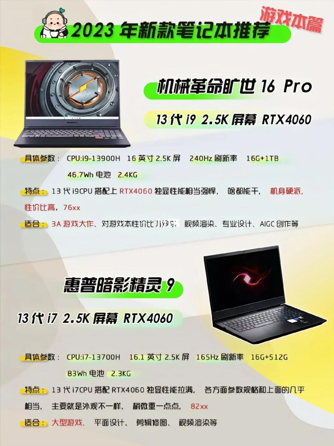 💻游戏本:机革旷世16Pro 和 暗影精灵9
