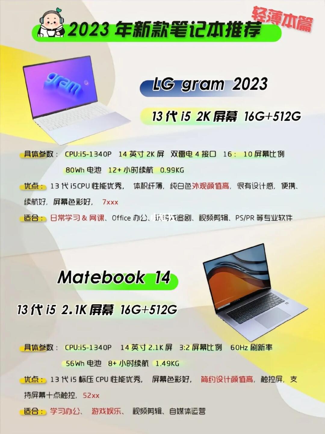 💻轻薄本:LG gram 2023 和 Matebook 14