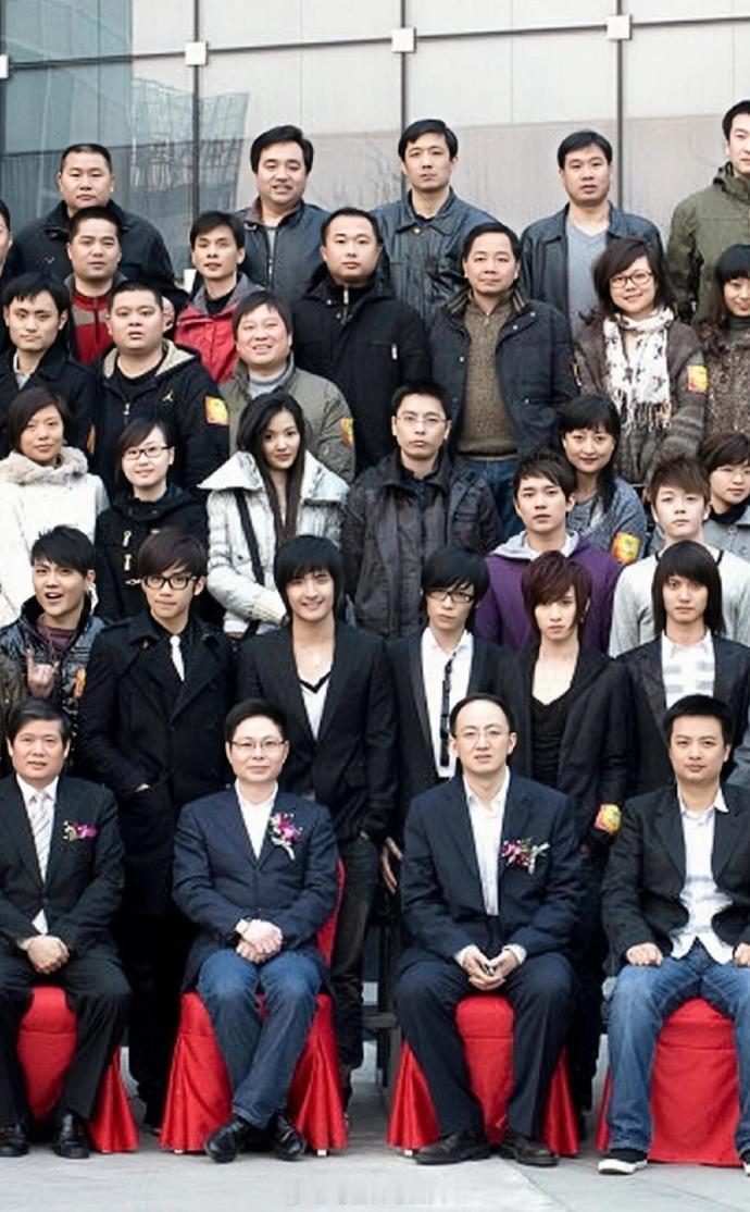 李宇春、张杰、0713再就业等当年天娱全家福!看看古早时期扮相的珍贵照片!不打扮的话,艺人和素人真没两样呀!原来明星和领导合照也很紧张呢!看看你都找到了谁?图片来自马栏山综艺资讯。