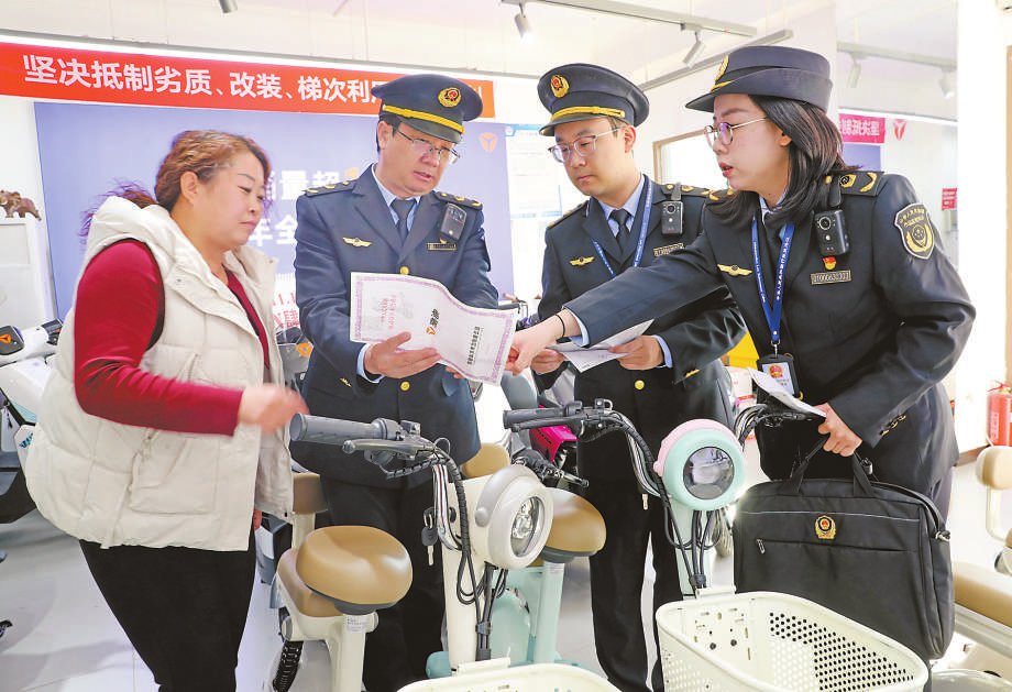 10月27日,北京市石景山区市场监管局开展电动自行车专项检查,执法人员重点查看电动自行车、电动摩托车销售门店是否严格执行进货查验制度,待售电动自行车是否具有3C认证标志、产品合格证,以及是否存在非法改装、拼装、加装等行为。本报记者董芳忠摄影报道