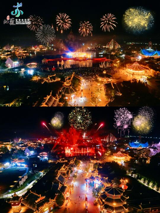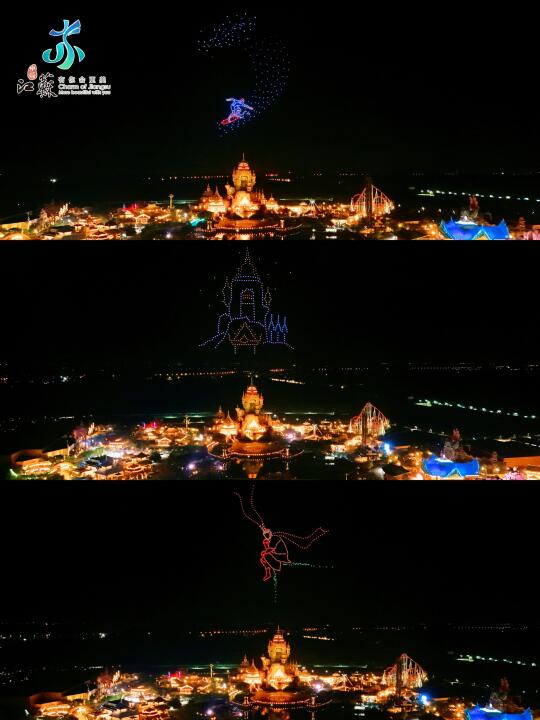 20:00无人机+烟花秀真的很震撼,五彩烟火点亮夜空,搭配音乐,好浪漫