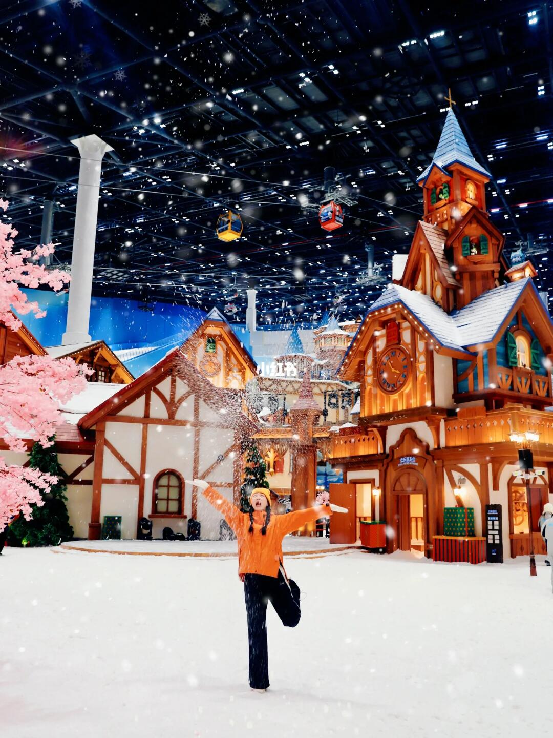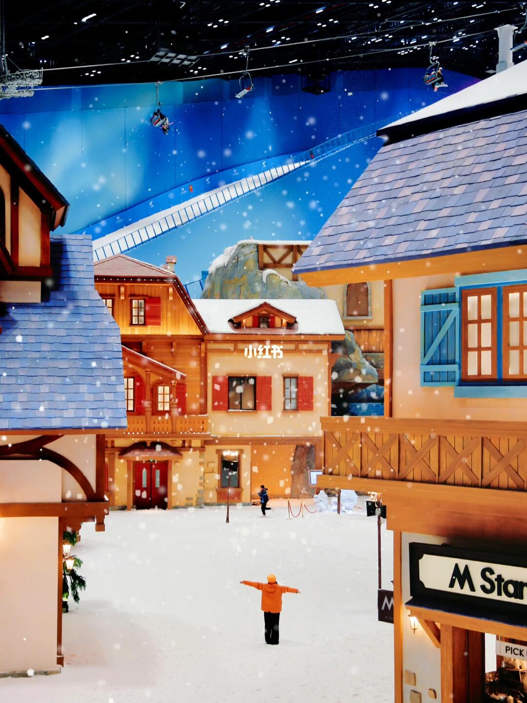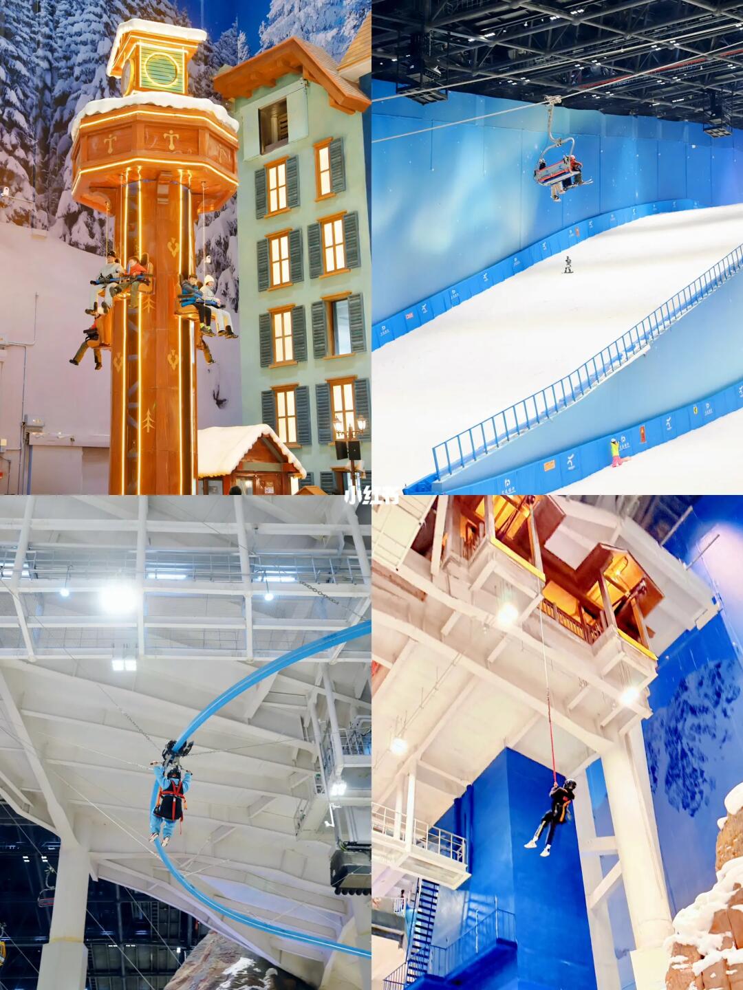 1️⃣楼极光小镇→钟塔速降→雪国列车直达5️⃣楼→体验雪山跳台、雪梯冒险、飞雪滑翔机等→楼梯或者电梯到3️⃣楼→体验惊险轮胎、冰上自行车、雪地乐园、七彩雪寨等