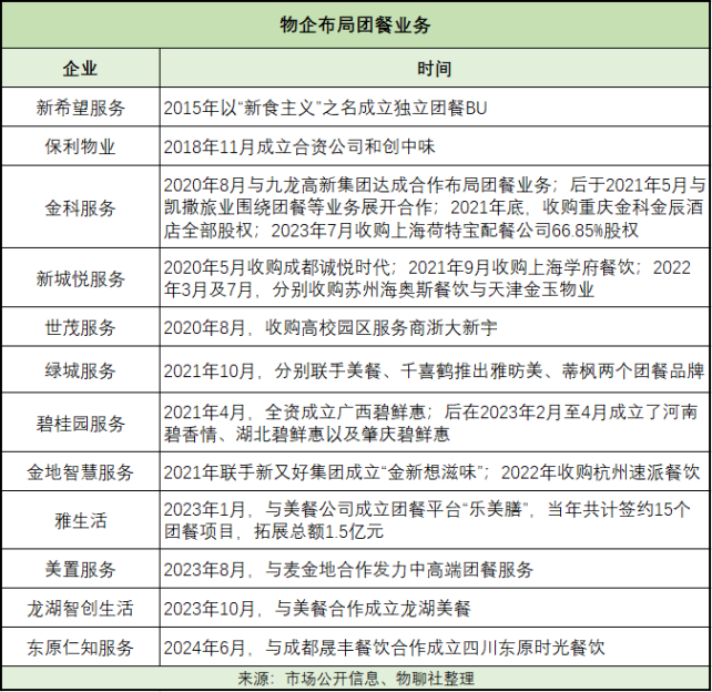 目前国内上市物企中,保利物业、碧桂园服务、金科服务、新城悦服务、绿城服务等都已布局团餐业务。