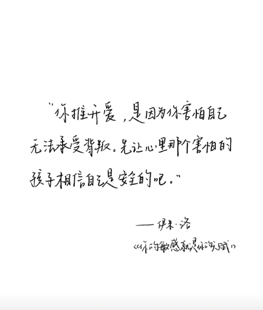 🙃“你推开爱,是因为你害怕承受背叛,先让心里那个害怕的孩子相信自己是安全的吧。”