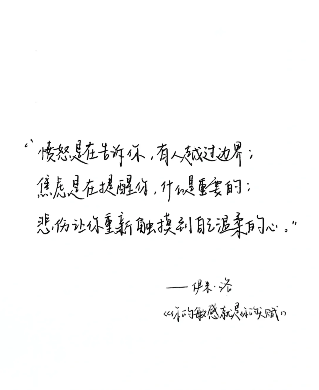 🙃“愤怒是在告诉你,有人越过边界;焦虑是在提醒你,什么是重要的;悲伤是让你,重新触摸自己温柔的心。”