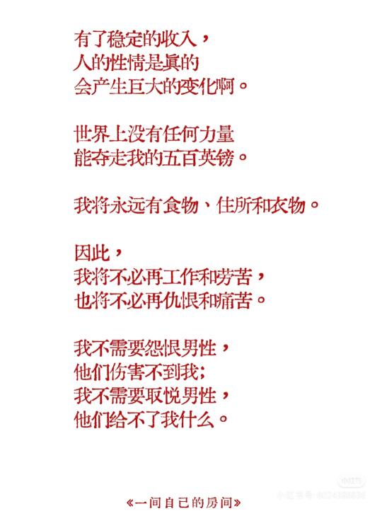 在看伍尔夫的《一间自己的房间》(9.9啊!!!!我何德何能找来的活动!!9.9的伍尔夫啊!),当她聊到女性开始存第一笔钱,开始第一次说不,第一次掌控自己的人生的时候。