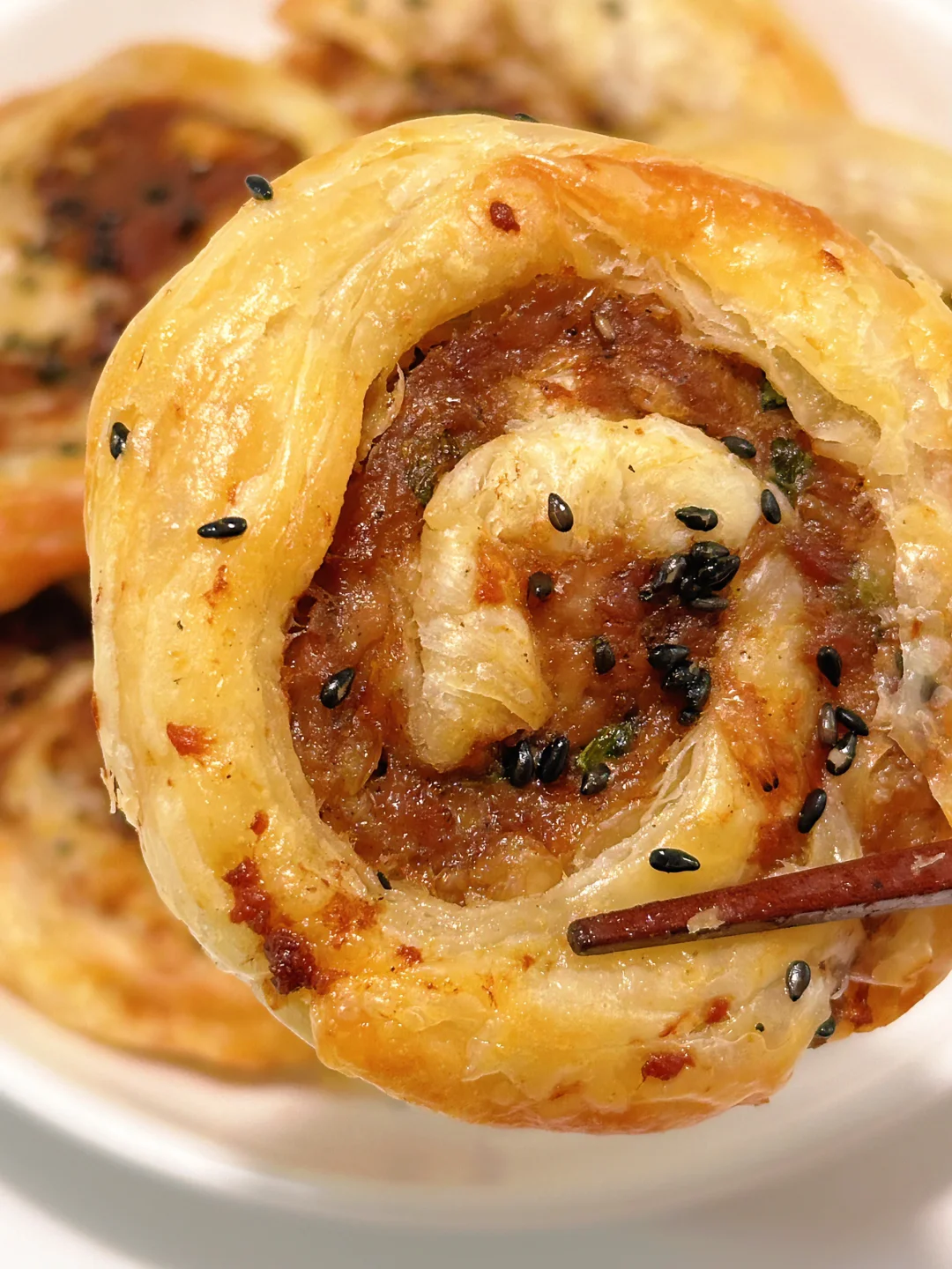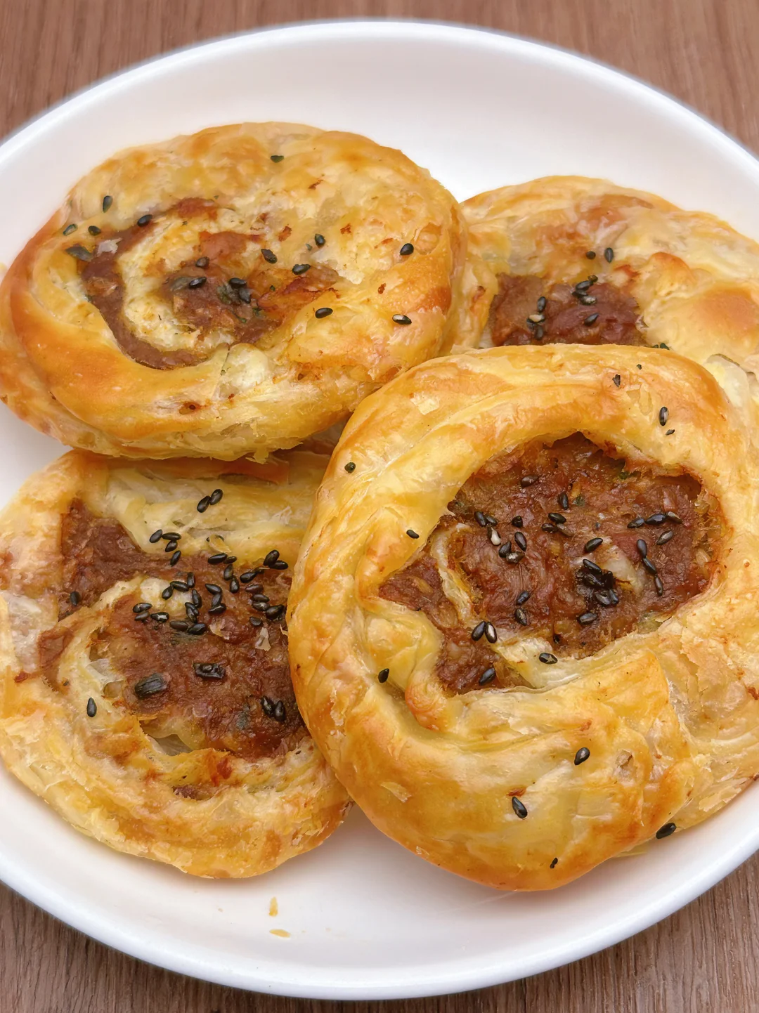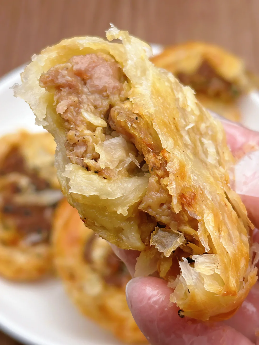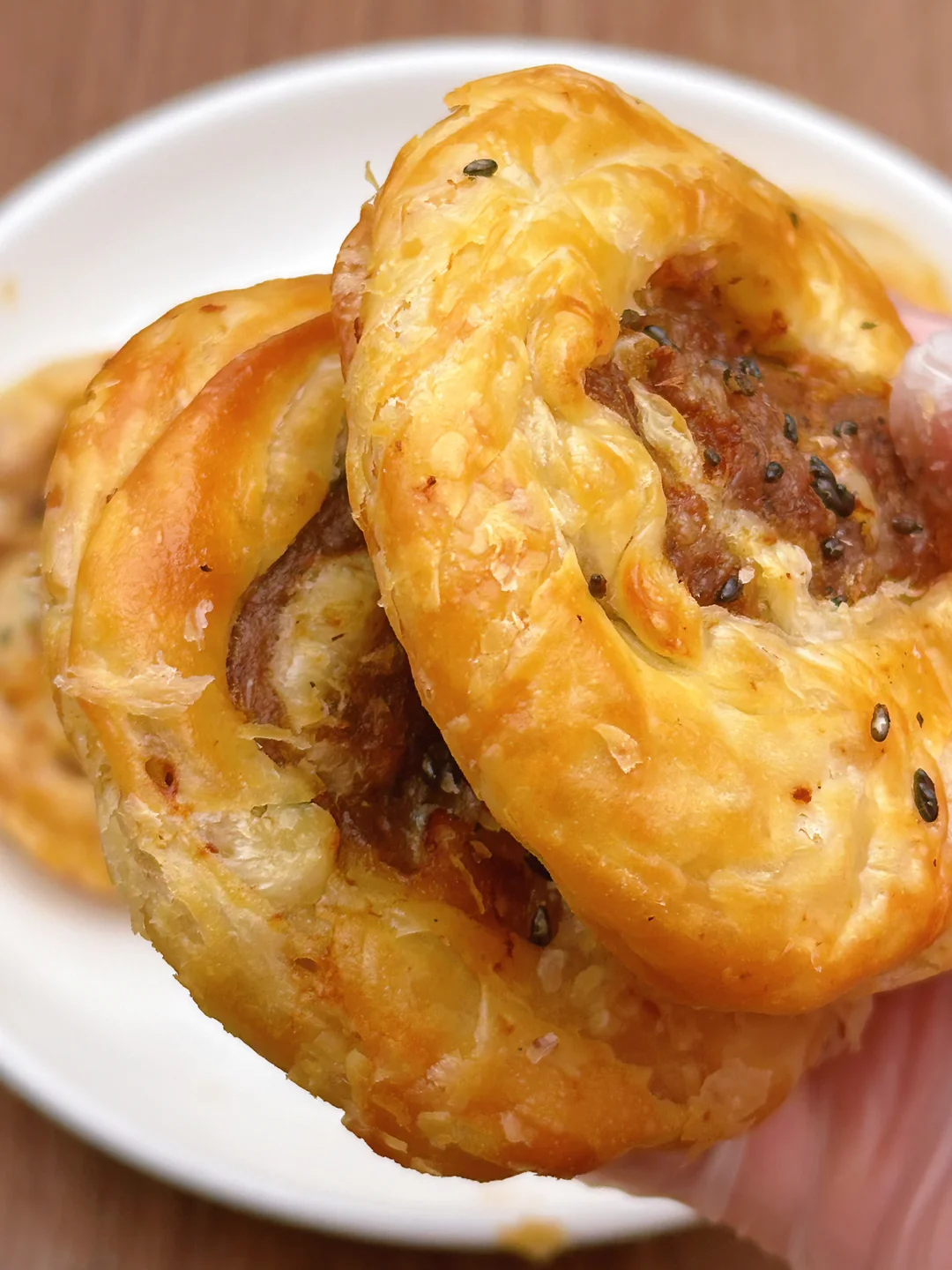 姐妹们,放假一定要试试这个鲜肉锅盔,咬一口酥脆掉渣,不用揉面、擀面,有手抓饼就可以做~做法也超级简单,又酥又脆,薄薄的肉馅混合淡淡的葱花香,刚出炉小朋友一口气吃了3个,酥到掉渣~ 做法简单,想失败都难!姐妹们快去试试吧~ 食材:猪肉、手抓饼、葱花、虾皮(也可以不放) 做法 1️⃣ 猪肉剁馅,放入葱花、虾皮淋上热油 2️⃣加入2勺生抽、半勺蚝油、少许白胡椒粉、少许孜然粉、几滴香油拌匀 3️⃣手抓饼上分别放入适量的肉末铺平(肉不要太厚)从边缘卷起来,用刀切3-4段(我是3段) 4️⃣切段其中一头底部捏紧,从另外没捏紧的一头,向下压扁 5️⃣放入炸锅中180度20分钟,中途翻面即可好吃又简单的鲜肉锅盔就做好了,一学就会!咬上一口,酥脆掉渣,完全是懒人福音,赶快行动起来吧~