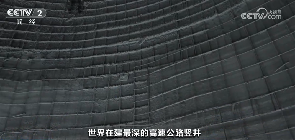 乌尉高速天山胜利隧道入口端TBM总工程师崔华新称:“这是‘首创号’竖向掘进机开挖的竖井,是世界在建最深的高速公路竖井,竖井的深度是707米,我们坐着吊桶下去大概就需要5分钟时间,整个2号竖井有4个风道,它是通向行车的隧道。”