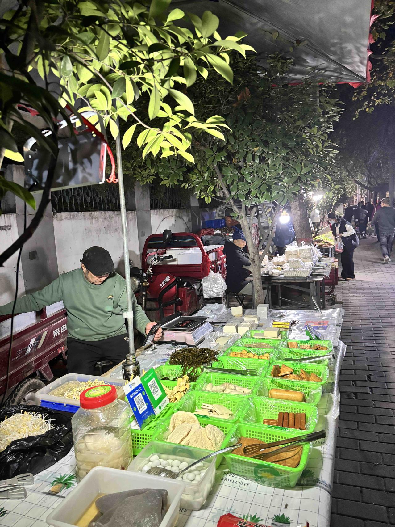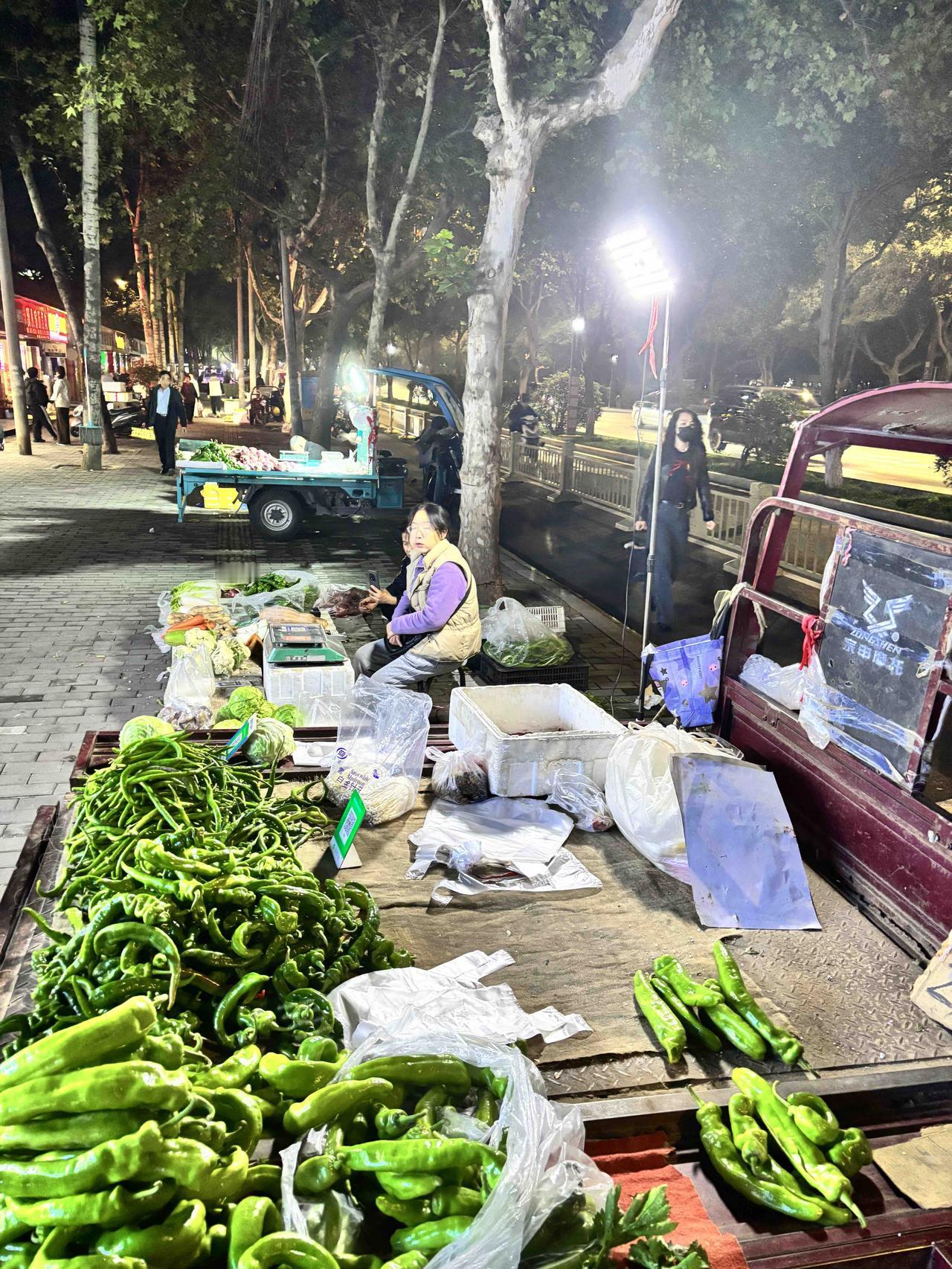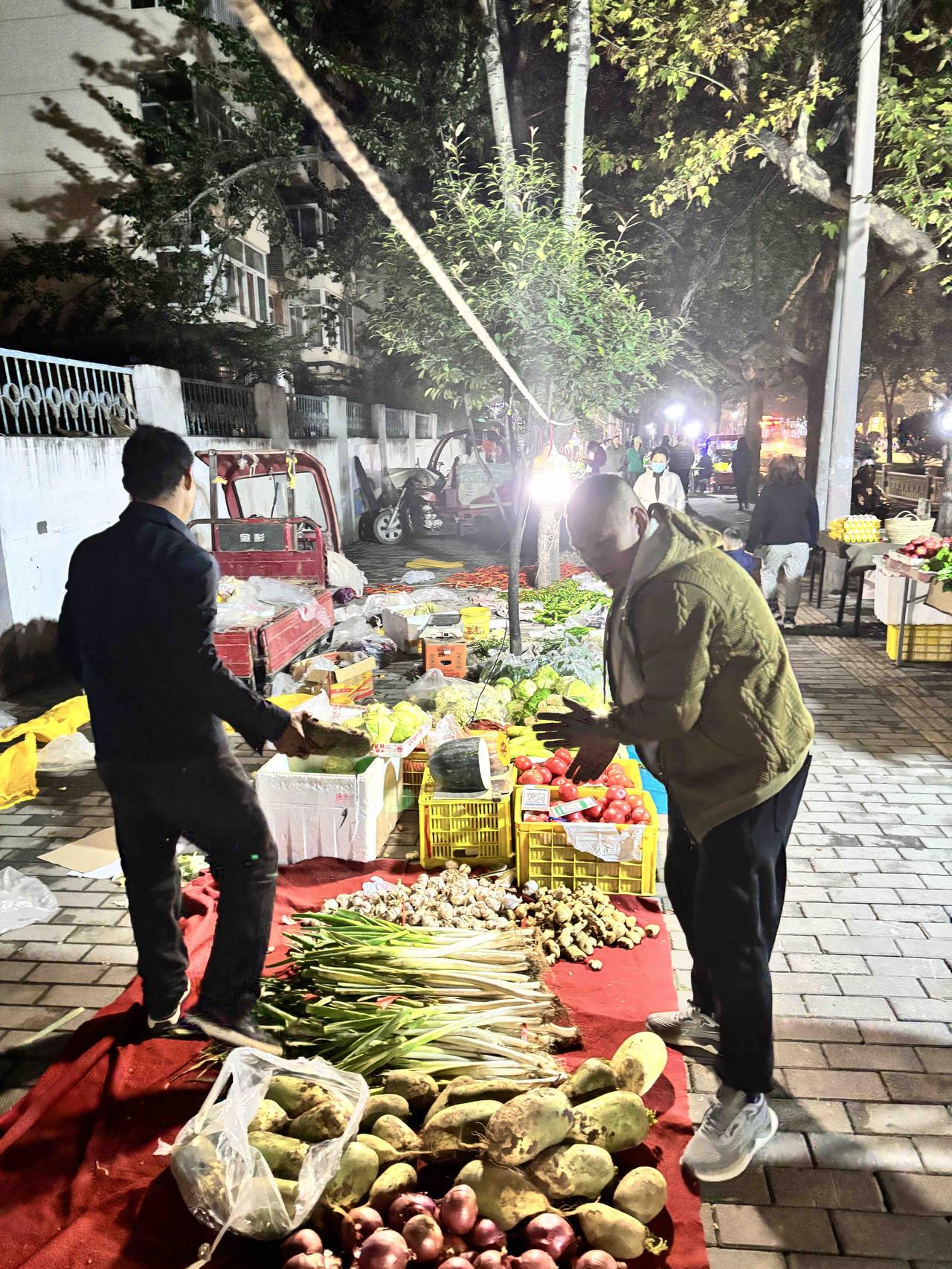 夜市最热闹的是小吃区。烤面筋、羊肉串和现压饸饹的香味老远就能闻到,下班的人常买点当晚饭。学生放学也爱来这儿买点零食。 这个夜市虽然不大,但啥都有。菜是农民直接拉来卖的,新鲜又实惠。晚上八九点人最多,大家都说有了这个夜市,生活方便多了。现在这片儿的人都习惯晚上来这儿转转,买点东西,跟熟人聊聊天,成了日常生活的一部分。