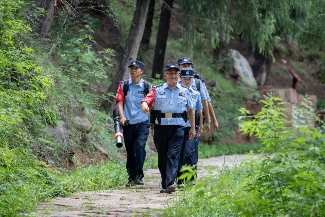 7月17日,梓潼县公安局演武派出所民警辅警在七曲山景区巡逻。唐超摄