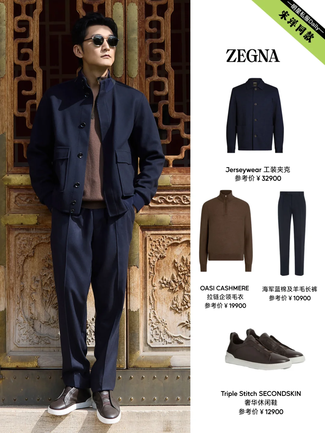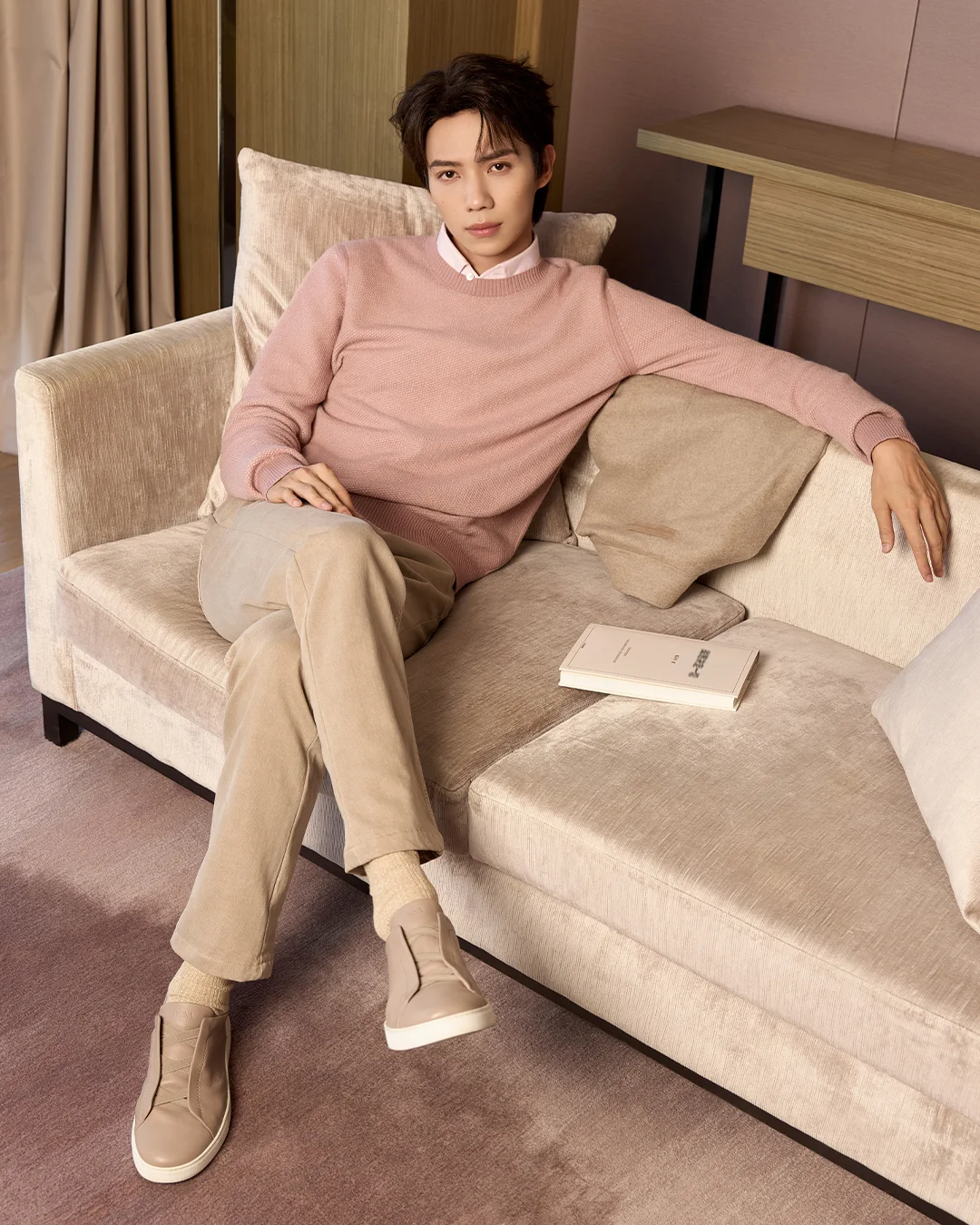 除此之外,三人都搭配了杰尼亚最经典的Triple Stitch系列XXX鞋,谭凯上脚的Triple Stitch Monte设计灵感来源于户外徒步,所以更加便捷舒适,其设计延续了品牌经典的三重交叉松紧带,兼顾了穿脱便捷和视觉辨识度。