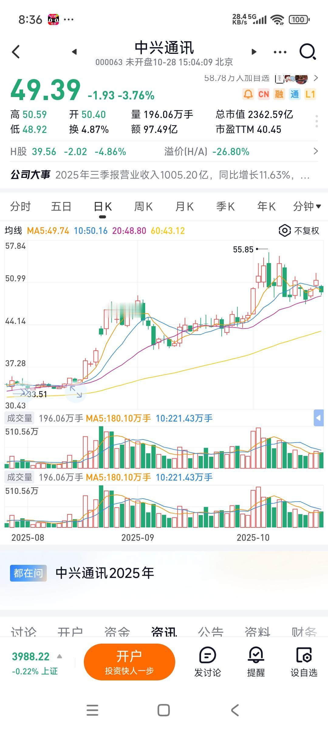 1000亿的营收,只有50亿的净利润,这就是中兴通讯...净利润率低到爆,相当于