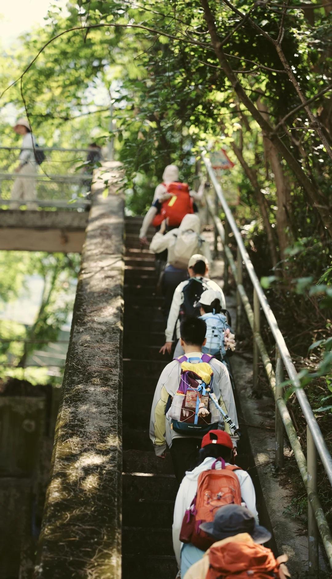 Eason你来的Sunset Peak确实好看 香港大东山 sunset peak(草还没完全黄版本) 🗺反穿长度:约10公里,爬升约900 ⌚️花费时长:7小时(含拍照休息时间,因为我们有二十几个人一起所以走走停停要等大部队) 去程交通🚗 从东莞出发自驾到会展中心➡️坐地铁4号线到福田口岸➡️福田口岸过关后➡️港铁东铁线(落马洲→红磡)➡️屯马线(红磡→南昌)➡️东涌线(东涌站B口)➡️出地铁走一会就是徒步起点(不用上楼梯,直接往桥下走) 午餐🍞 地铁东涌站出来就是东荟城,可以在这里吃个午餐,上个厕所,这里的面包20元两个,但是我们带了面包 ⛰️ 路线 东涌站➡️二东山➡️大东山顶➡️跳板石➡️伯公坳 ①12:00开始徒步 ②15:30左右抵二东山,打卡Eason专辑封面 ③16:40登顶大东山峰 ④17:00跳板石,可以在这里看日落,拍悬空照片 5️⃣ 18:00左右下山,全程石板路但坡度陡,大约需要1个小时,日落结束后,天很快就黑下来,我们没有准备头灯,但是有的话可以准备一个(第一次下山遇到堵“人”的,一个挨着一个下山) 🚌 返程交通 伯公坳巴士站➡️屿巴3M/11路➡️终点东涌站➡️再坐返程地铁➡️坐B1巴士到东荟城➡️坐地铁返程➡️回到东莞大概11点 📌📌📌注意!!有时间的话建议不要坐11A巴士,因为是专线所以要四十多块钱 👔 衣着建议 26号温度19-24度,爬的时候很晒,我们里面穿了个吊带就好了,不然身上全是汗,山顶巨巨巨风大,所以要带件薄外套但是我没用上,我觉得吹的超级舒服,但是有些人已经穿上羽绒马甲了。 💰花销 在香港的路费99.27再加上高速费油费伙食差不多两百左右 📄需要带的物品: 港澳通行证 充电宝 登山杖(下山登山杖救我狗命,全是台阶累死我了) 至少两瓶水、一瓶能量饮料及路餐(一大批人爬山也有好处就是啥都吃的到😋) 我有话说: 不是拉踩,中国香港的同胞们素质确实挺好的,但是香港的公交车和地铁真的好贵啊,一回到深圳坐上两块钱的地铁我觉得太划算了,怪不得大家香港赚钱深圳花!! 徒步丈量世界 户外徒步 我的徒步日记 我的人生电影 自由 香港徒步 大东山