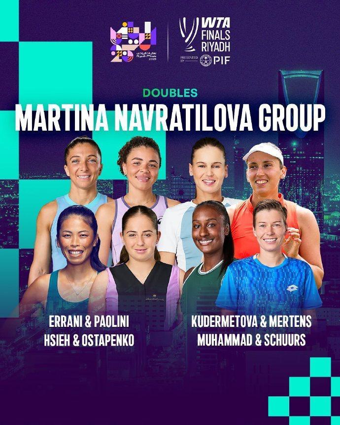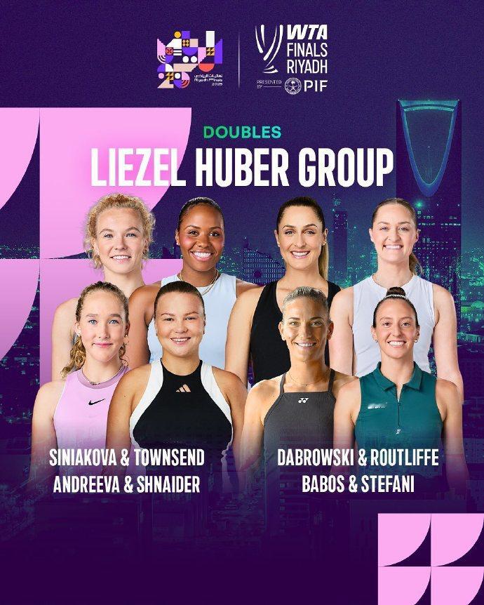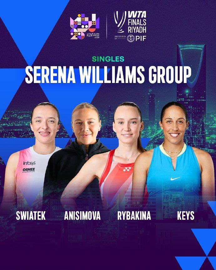 2025WTA年终总决赛分组 WTA利雅得年终总决赛分组公布,分别是: