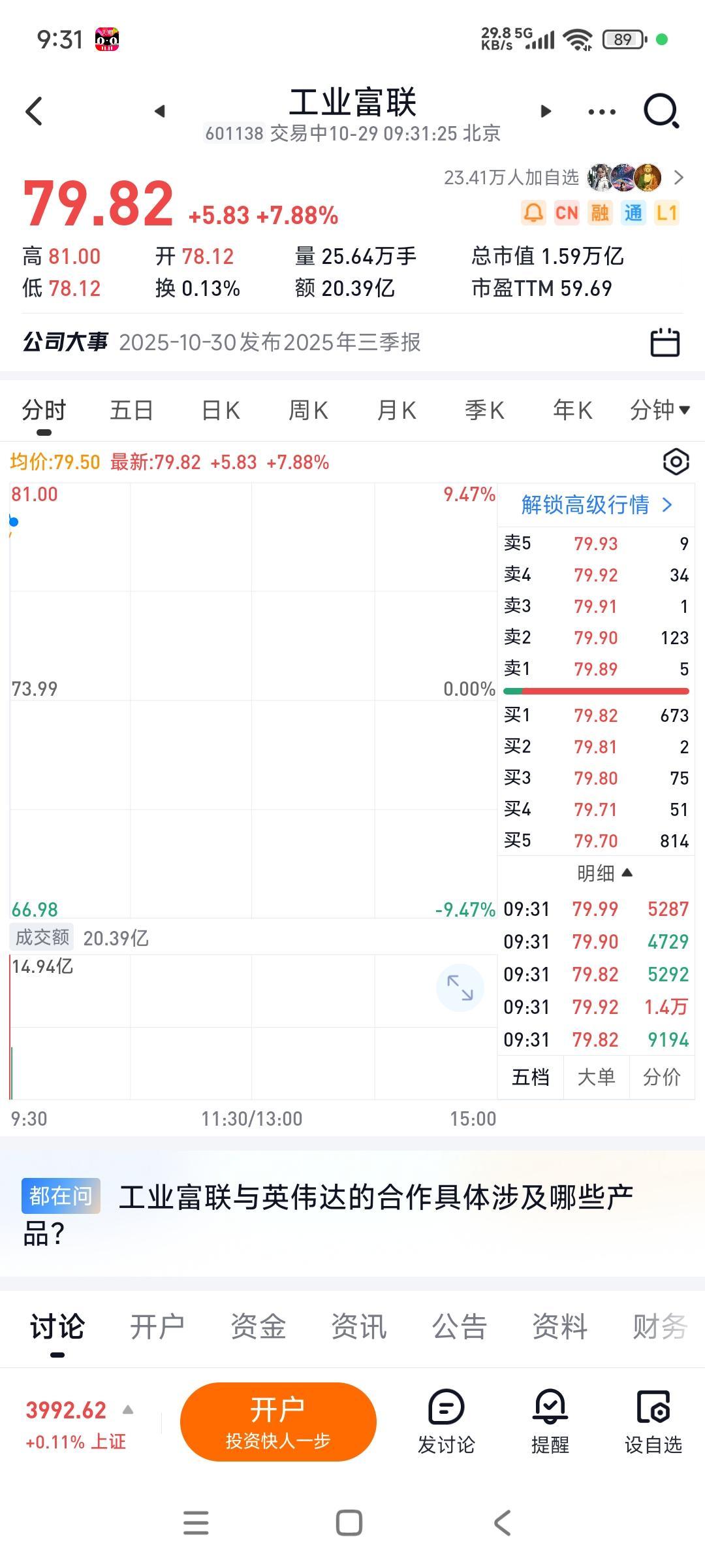 工业富联开盘大涨,要冲击涨停,股价继续创新高,市值马上超1.6万亿,与贵州茅台只