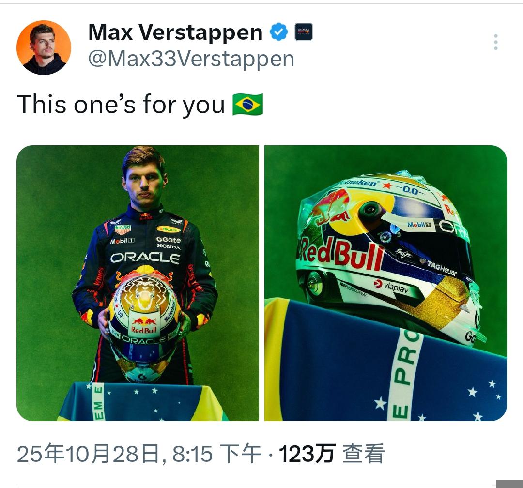 维斯塔潘将在F1圣保罗大奖赛佩戴特别版头盔