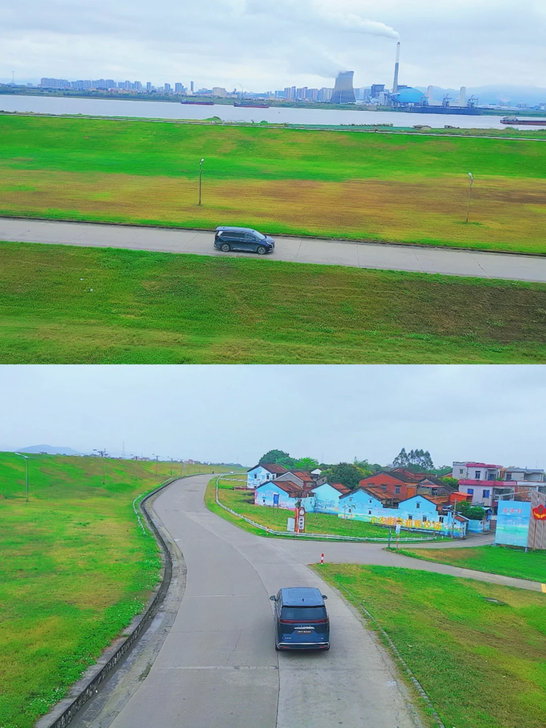 沿着北江大堤露营地,一条直线往前开,一路风景都很美,随机往堤坝上走,看看牛羊,都是不一样的风景。