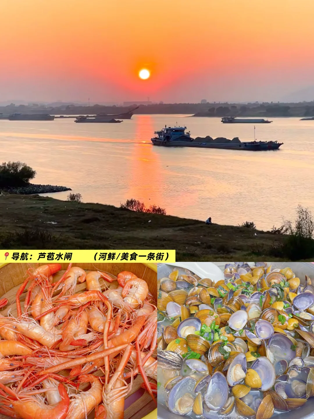 沿着北江大堤一路往前开,彩虹河堤、渔船、江边集市、河鲜大餐,渔船停靠岸边就地摆卖,太有烟火气了吧!喜欢的可以买点河鲜,去隔壁餐厅加工(10-15元/斤),性价比拉满