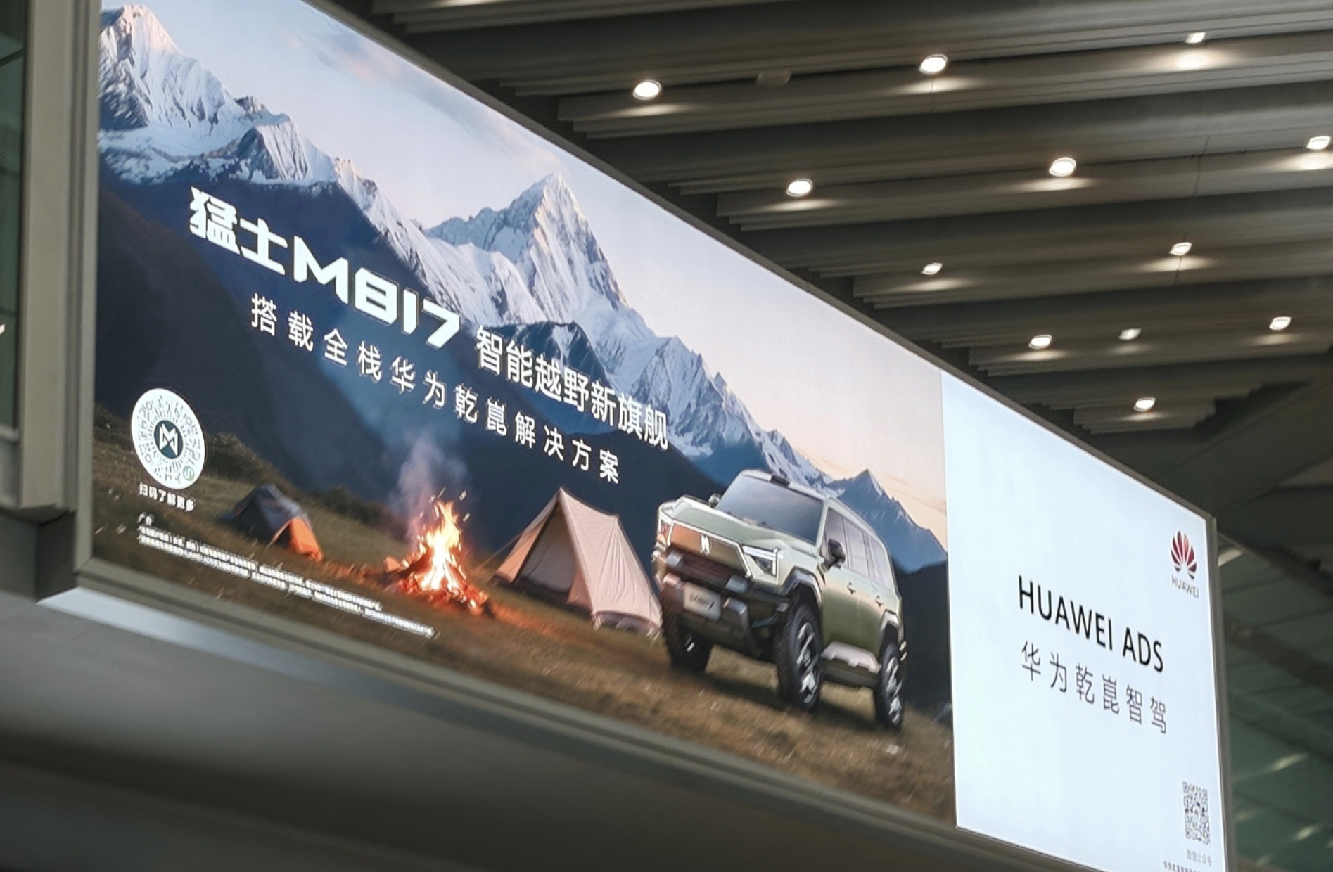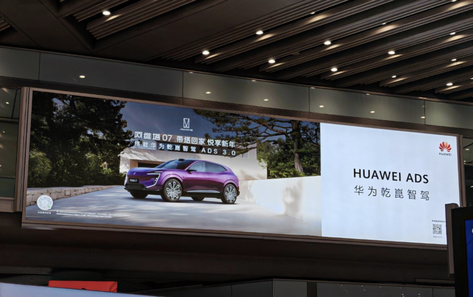 而且也不只是阿维塔,很多用华为乾崑智驾的车型,在发布的时候华为乾崑的官号都会进行直播,户外、机场广告也都带大家一起玩,一样的广告牌格式变换着不同的车型旁边写着乾崑智驾,咱先不说这宣传作用,就这个合作态度,真没啥说的了。