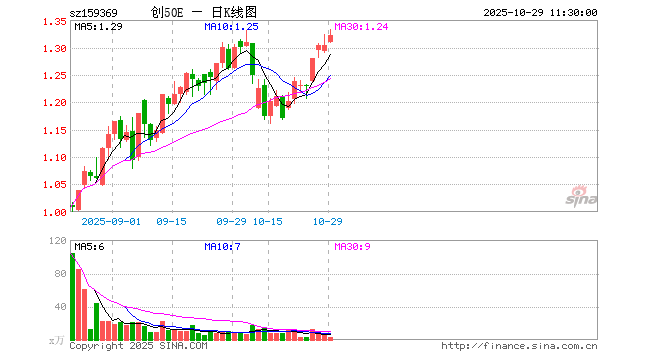 10月29日,截止午间收盘,创业板50ETF易方达(159369)涨1.46%,报1.322元,成交额449.05万元。创业板50ETF易方达(159369)重仓股方面,宁德时代截止午盘涨1.98%,东方财富涨2.73%,中际旭创跌0.88%,新易盛跌2.20%,胜宏科技涨4.28%,汇川技术涨1.09%,阳光电源涨6.70%,迈瑞医疗跌2.22%,同花顺涨6.52%,亿纬锂能涨3.42%。