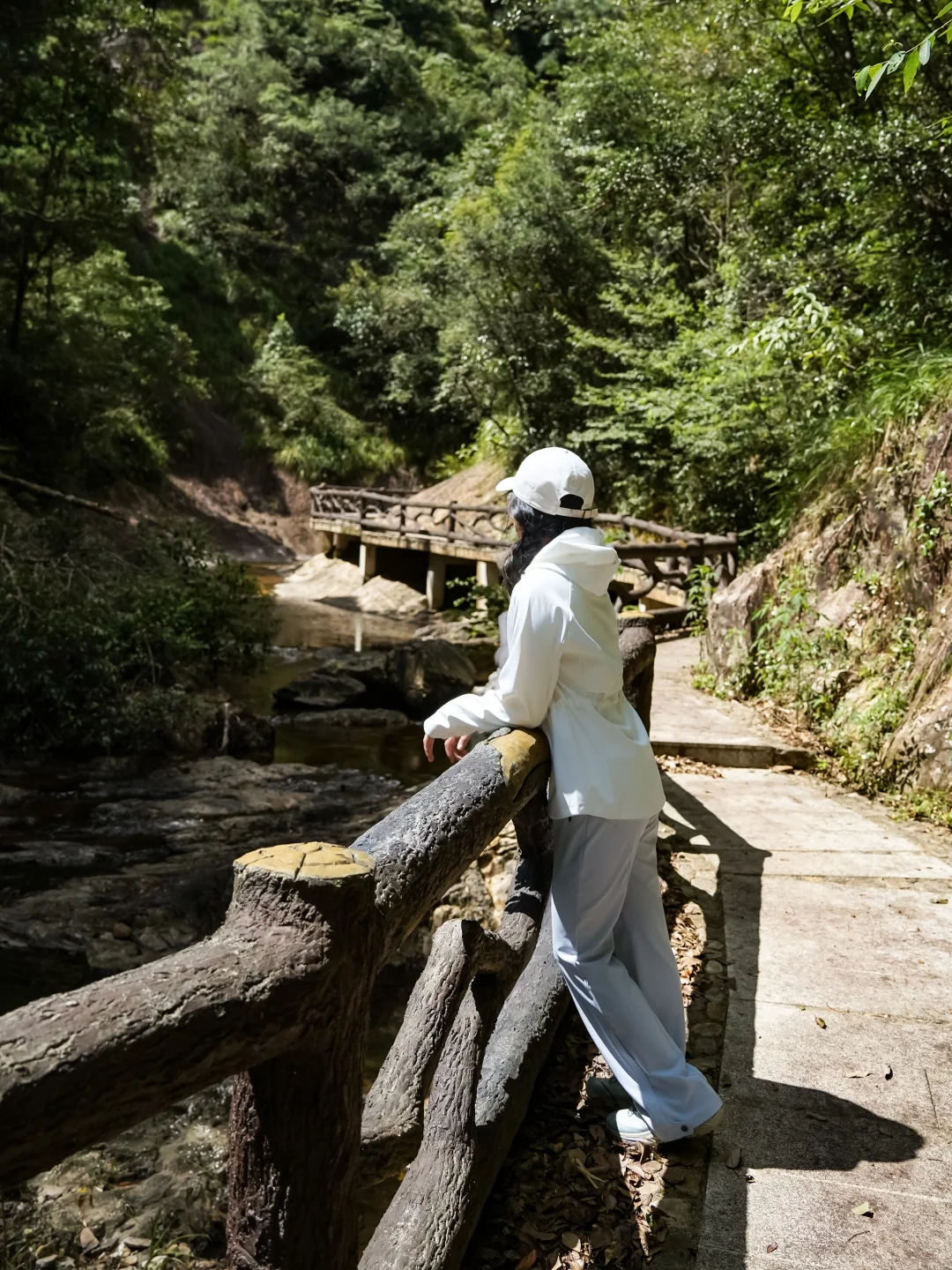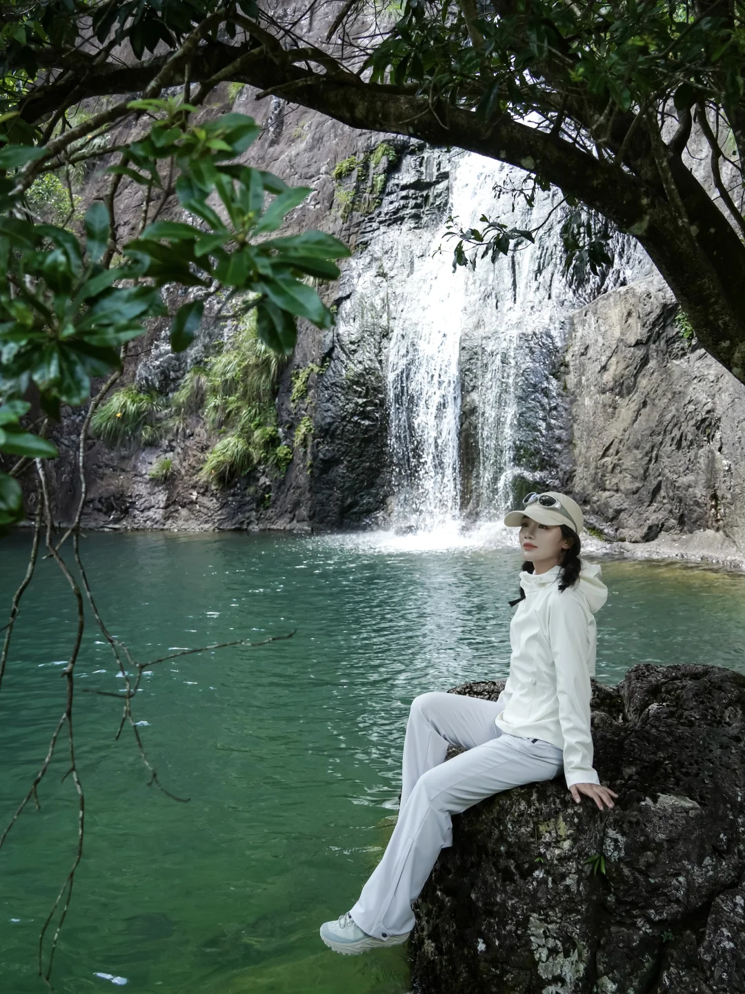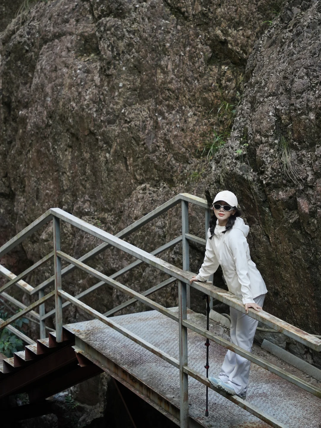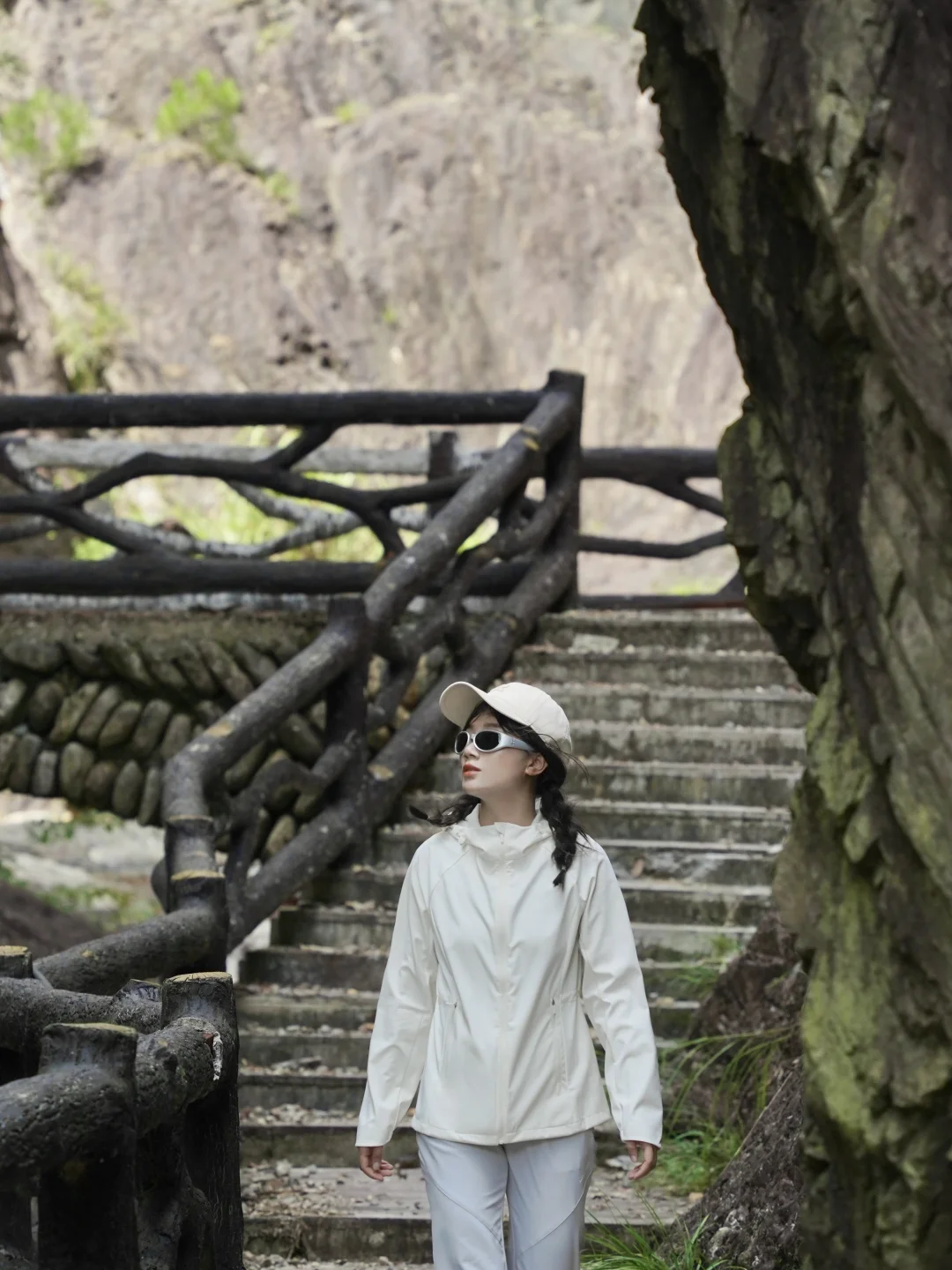 太阳帽🧢、登山杖🧗🏻、溯溪徒步鞋👞、墨镜🕶️、薄绒软壳外套、有弹性的喇叭裤(这次我穿了魔力薇薇的一整套,穿起来轻盈透气。裤子是微喇的,有弹性还显腿长。衣服是带了抽绳收腰的设计,后背还有网孔复片,穿起来不仅透气,还显瘦好看!是我买过最好穿,拍照又很出片的软壳套装了)