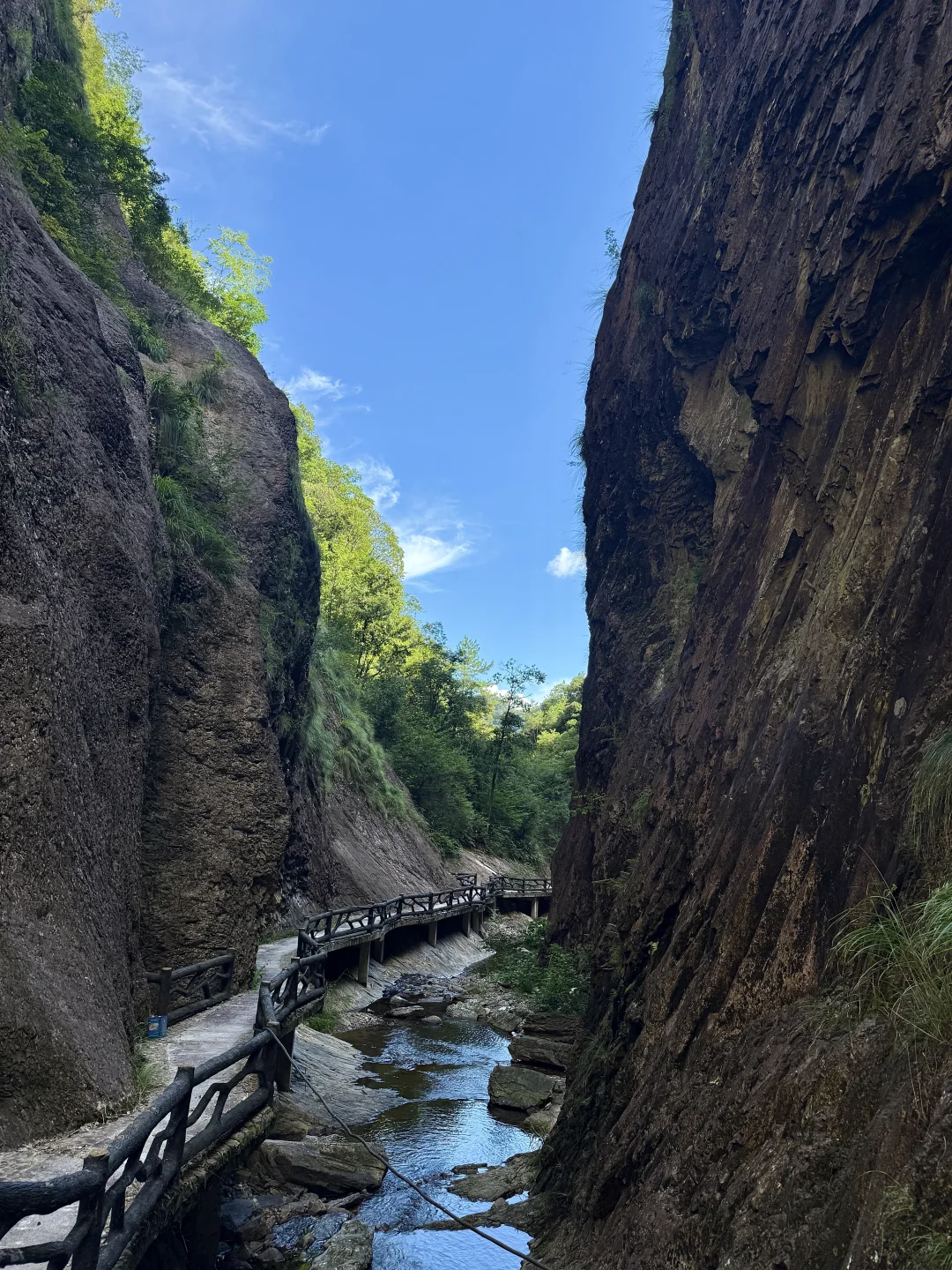 一路有栈道、溪流、瀑布、岩石🪨、亭子等