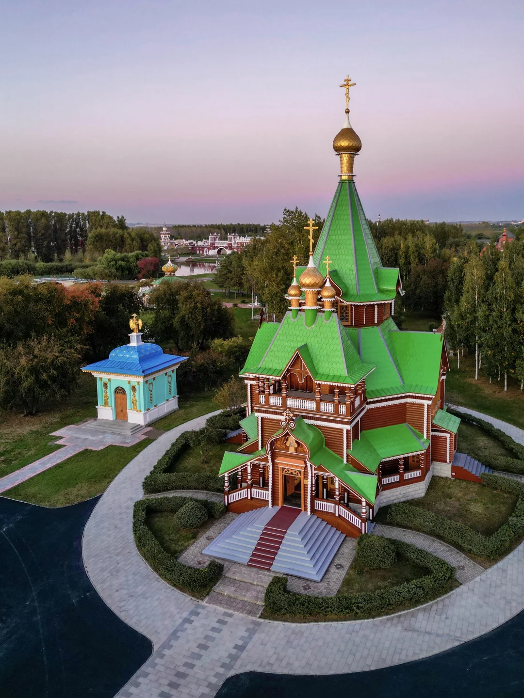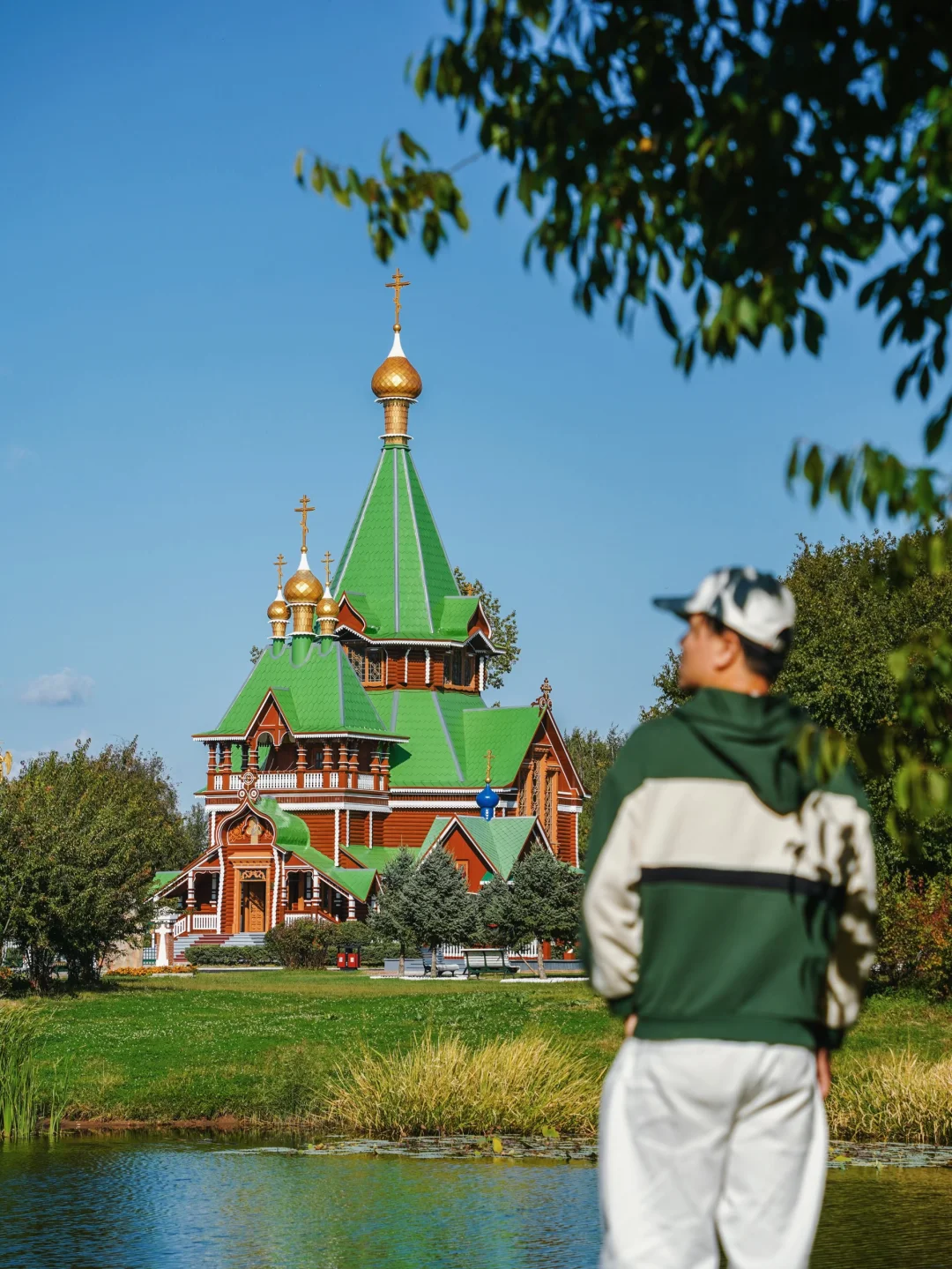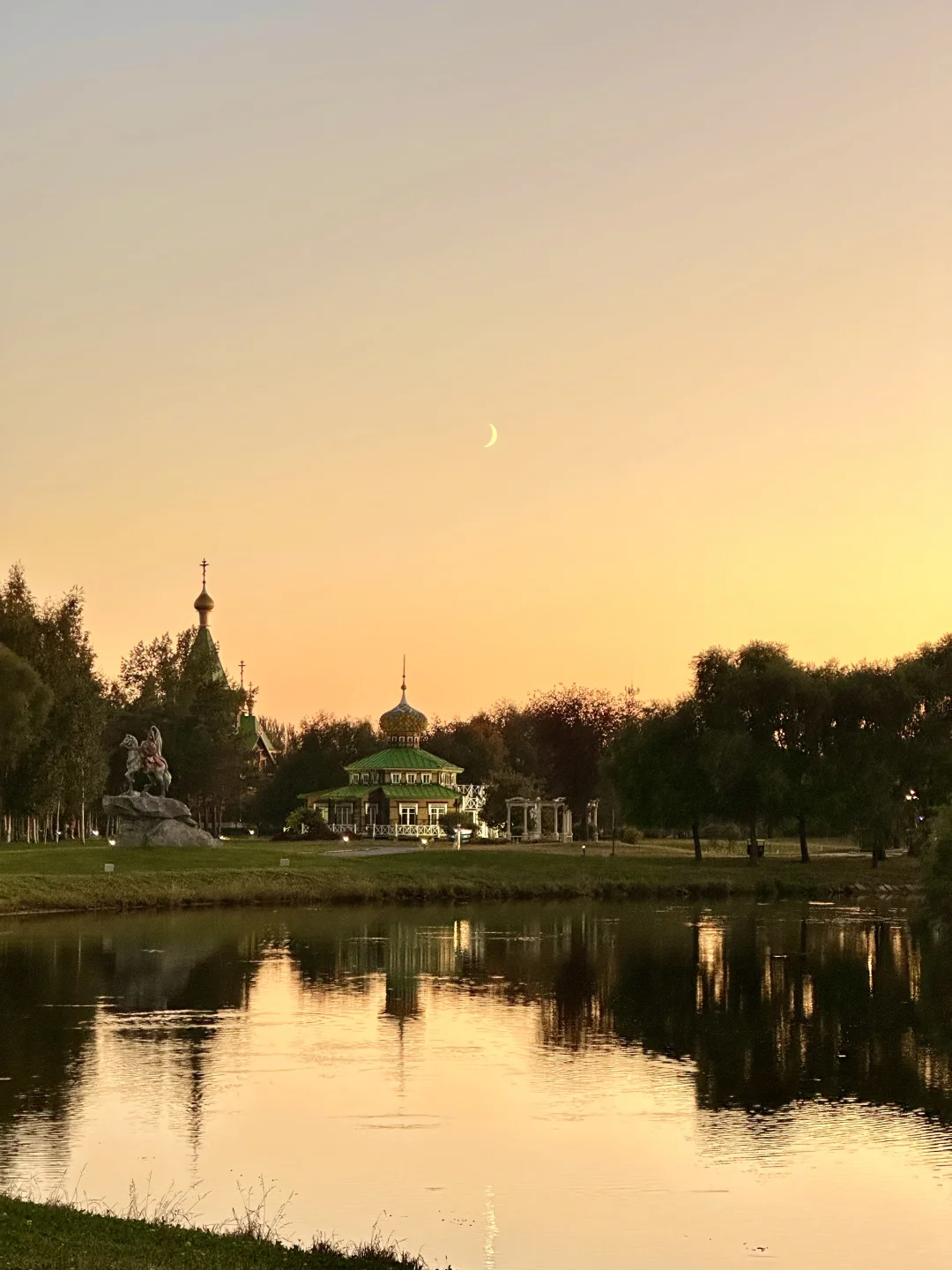 伏尔加庄园的白天漫画云作伴,像闯入了宫崎骏的动漫世界,好浪漫!蕞绝的是傍晚五点左右的魔法时刻,天空从橘子海色突然晕染成蜜桃粉紫色,整片建筑群在夕阳下像镀了层糖霜,圣尼古拉教堂的外观撞上粉蓝天幕,真的浪漫到窒息🥹