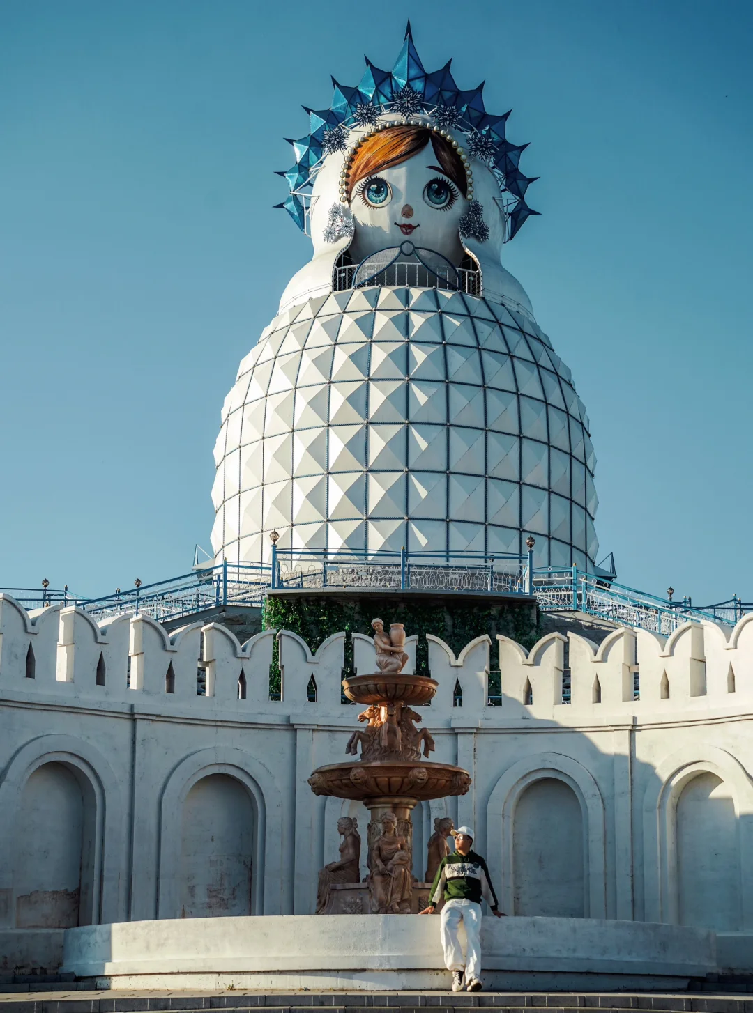 5️⃣新建的超大白色的雪姑娘童话城堡,坐在正面喷泉池处拍巨大的白色雪姑娘套娃,太可了