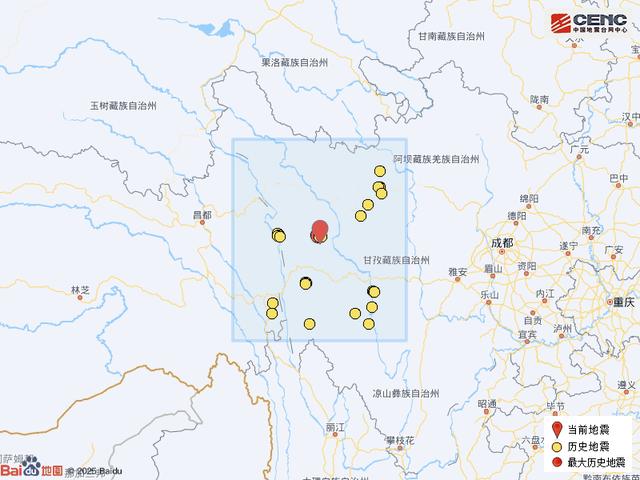 历史地震:根据中国地震台网速报目录,震中周边200公里内近5年来发生3级以上地震共27次,最大地震是2025年10月9日在四川甘孜州新龙县发生的5.4级地震(距离本次震中3公里),历史地震分布如图。