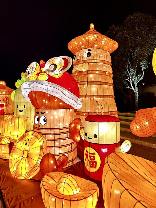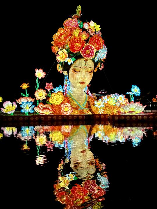 ❸灯会以“一步入上元”为主要脉络,由“上元张灯、花影映宵、绮罗粉黛、上元欢歌、不夜长安”共40组,五大主题灯区构成。