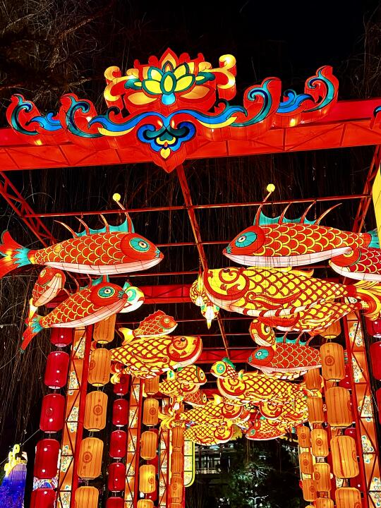 ⭕️水池里的天鹅🦢以及路上的鱼灯