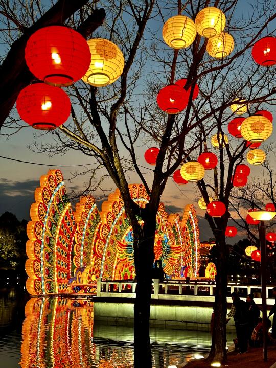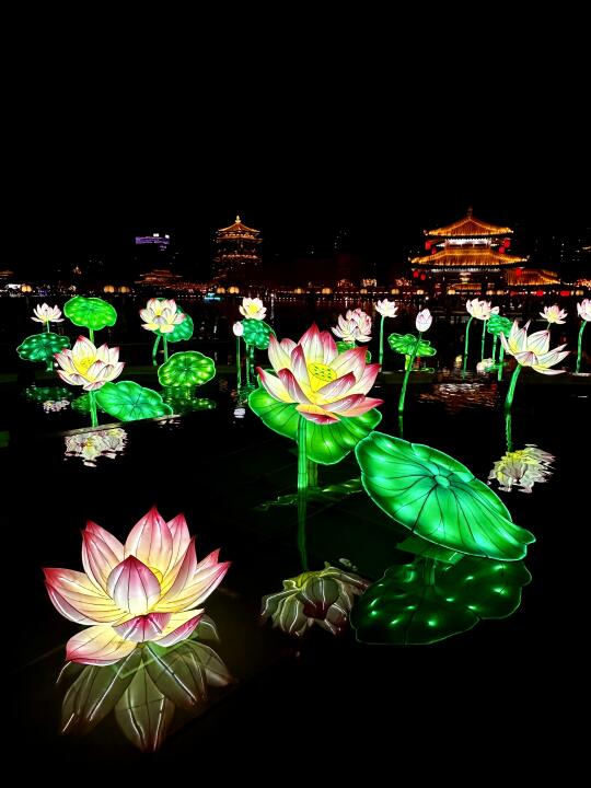 ⭕️紫云楼南侧广场的灯组和水上巨大凤凰