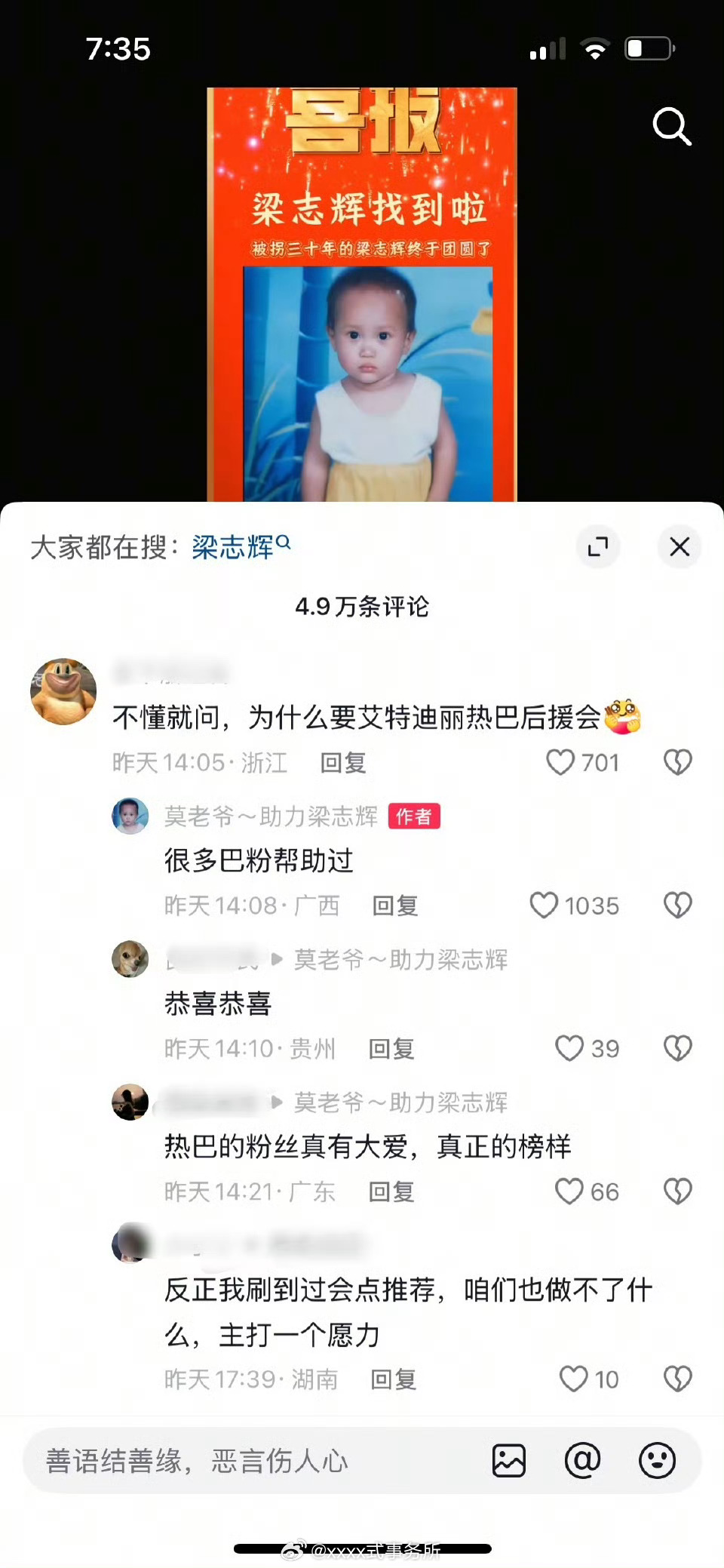 被拐三十年的梁志辉终于找到了,还艾特热巴后援会感谢,这就是利剑玫瑰邓妍的意义吧迪