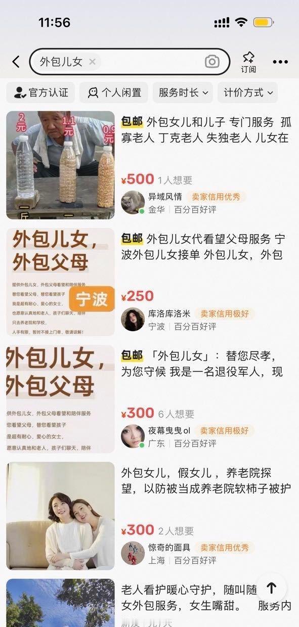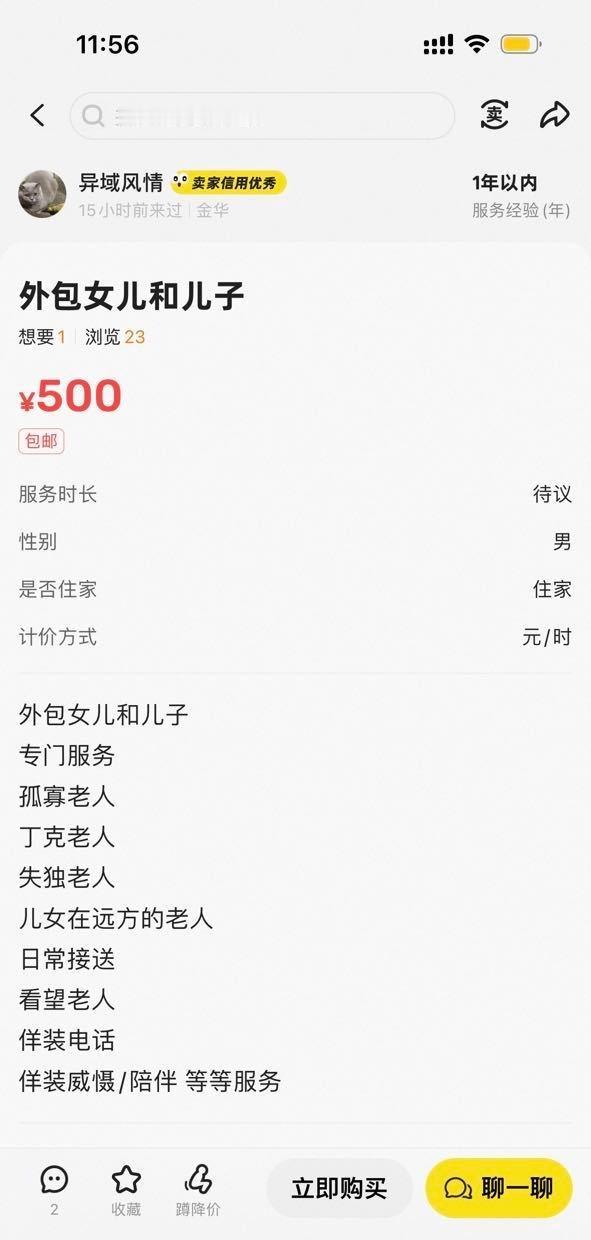 孝心也能网购,孤独也能外包,闲鱼上的“外包儿女”,倒成了这届年轻人“云尽孝”的新