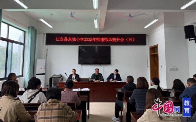 立德树人,师德为先。为进一步筑牢教师队伍的思想根基,近日,宜宾市江安县江安镇东城小学校召开第二学月师德师风提升会,专题布署第二学月师德师风建设工作。本次提升会旨在增强教师责任感、使命感与荣誉感,凝聚奋进力量,引导全体教师以昂扬的斗志和坚定的信念,全身心投入到新学期的育人事业中。会议由学校党支部书记、校长胡勇主持。