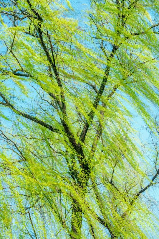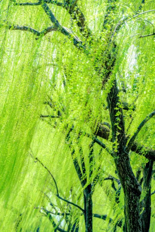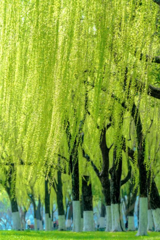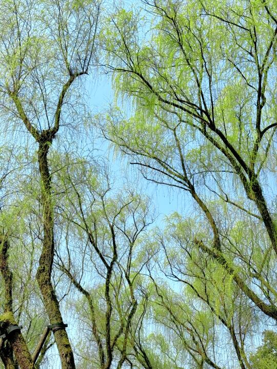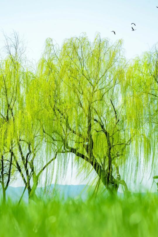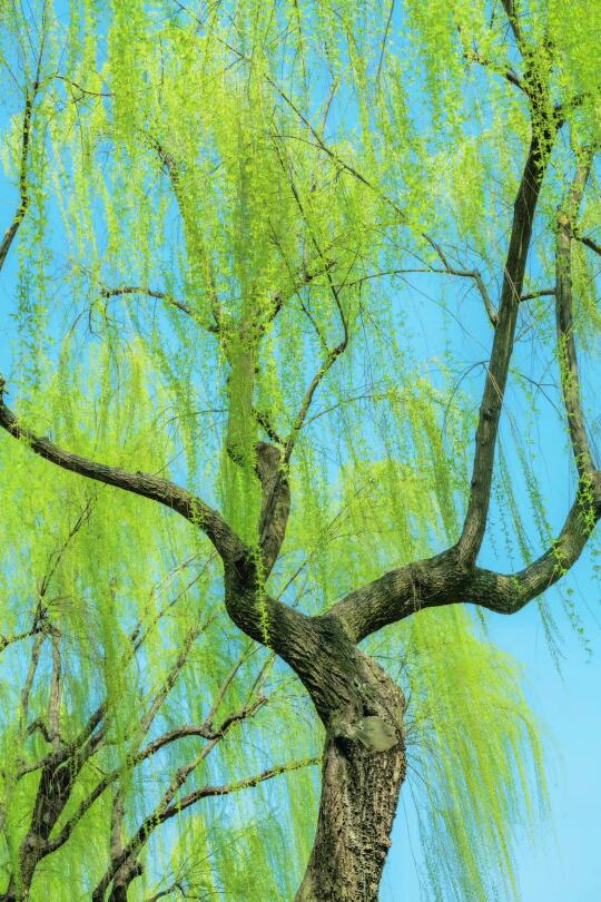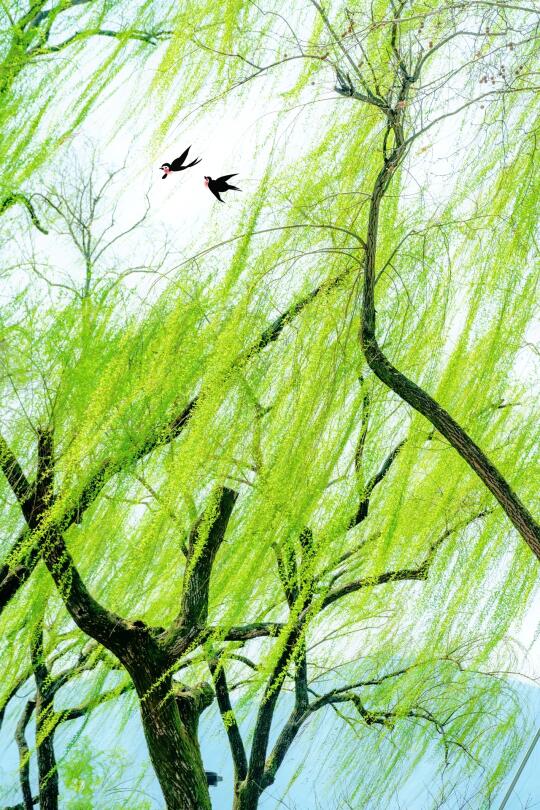 2️⃣构图技巧:寻找枝条间的形式感,比如垂直方向的平行线 。过桥时注意两侧柳树,可将柳枝柳条一同纳入画面。聚焦在柳条表现嫩芽,以虚化柳条为前景,寻找想表现的背景,如摇橹船、雷峰塔 。大场景拍摄,结合有形式感的柳枝和有层次的背景,或选标志建筑做背景。